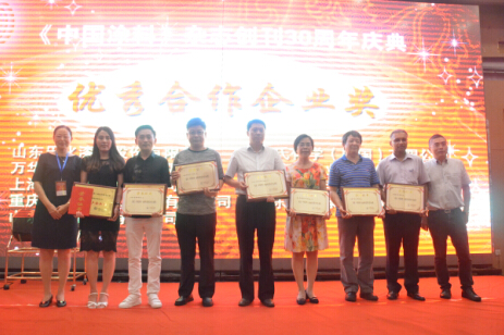 《中國涂料》卅周年優(yōu)秀合作企業(yè)獎