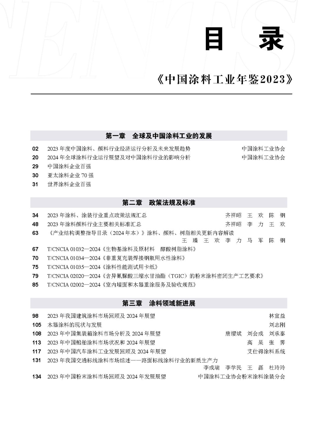 第一章,全球及中國涂料工業的發展。對2023年主要下游行業及國內涂料行業規模以上企業的經濟運行情況進行了深入分析,總結了涂料行業的運行特點,預判了2024年的發展趨勢。并全方位分析展望了2024年全球涂料行業的整體走勢。在行業調研的基礎上,由中國涂料工業協會首次發布了中國涂料企業百強、亞太涂料企業70強、世界涂料企業百強。