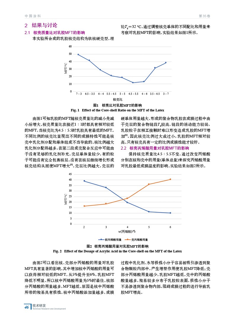 核殼苯丙乳膠最低成膜溫度(MFT)影響因素探究