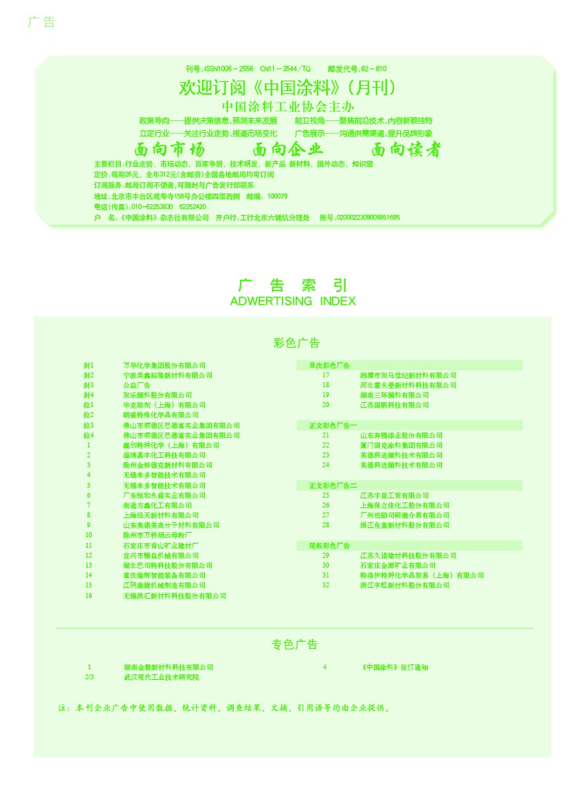 摘要:湖南金磐、武漢現代工業技術研究院、《中國涂料》征訂通知