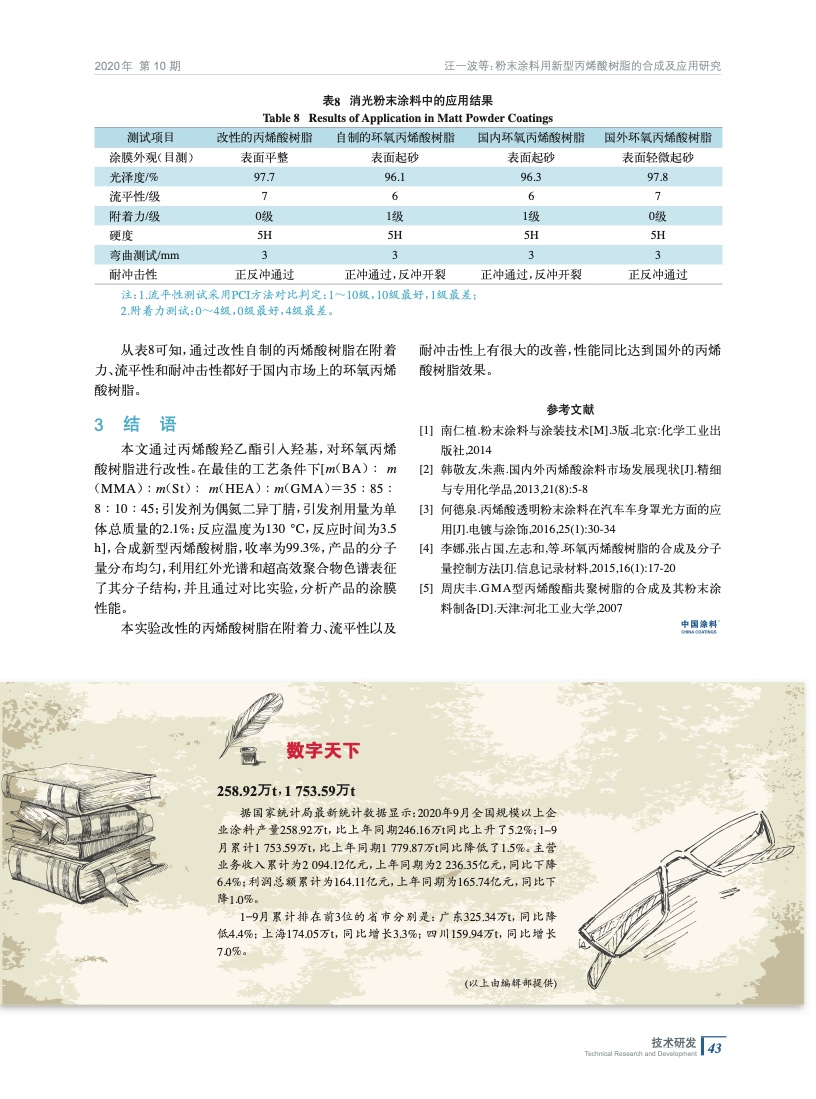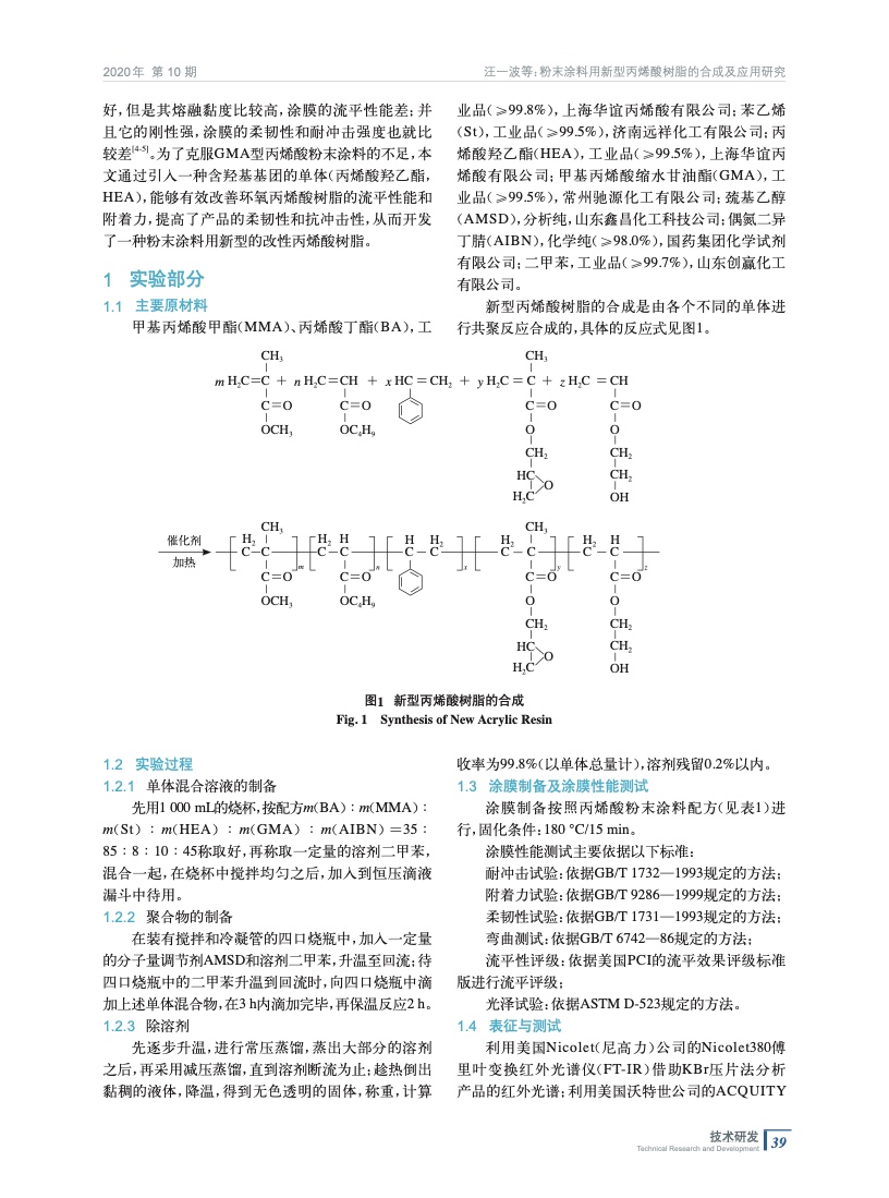 粉末涂料用新型丙烯酸樹脂的合成及應用研究