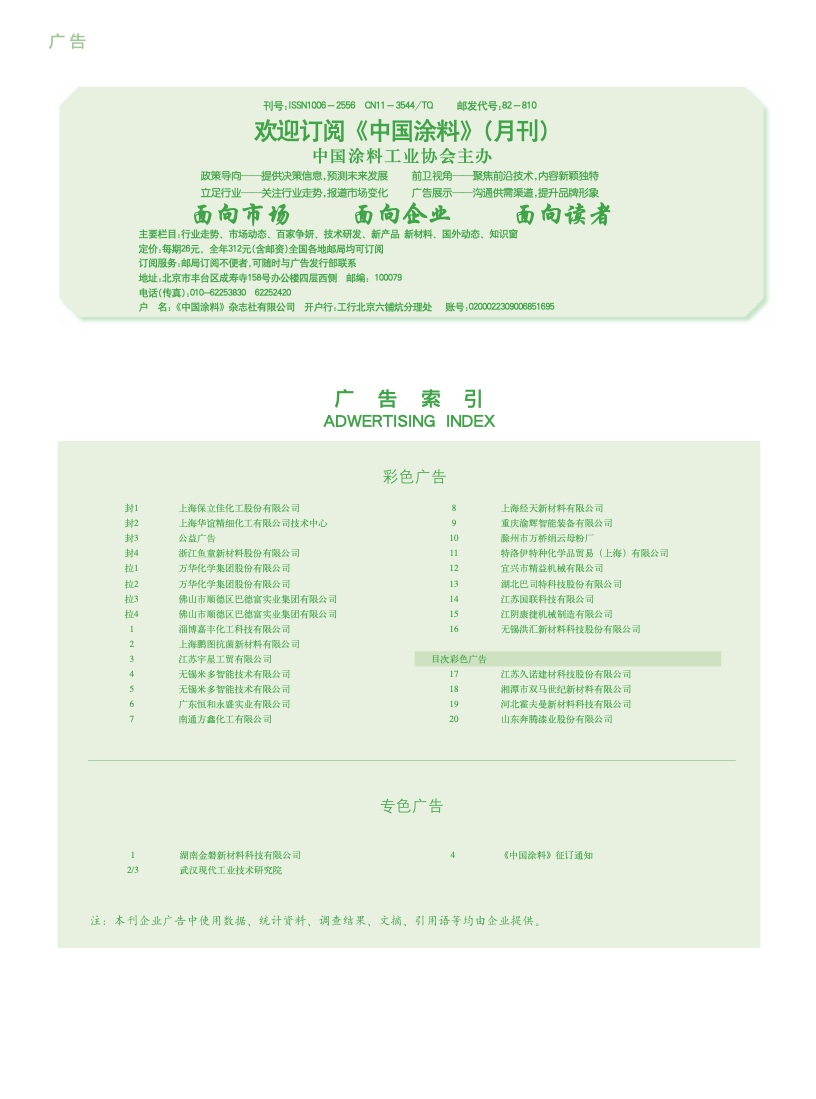 湖南金磐、武漢現代、《中國涂料》征訂通知