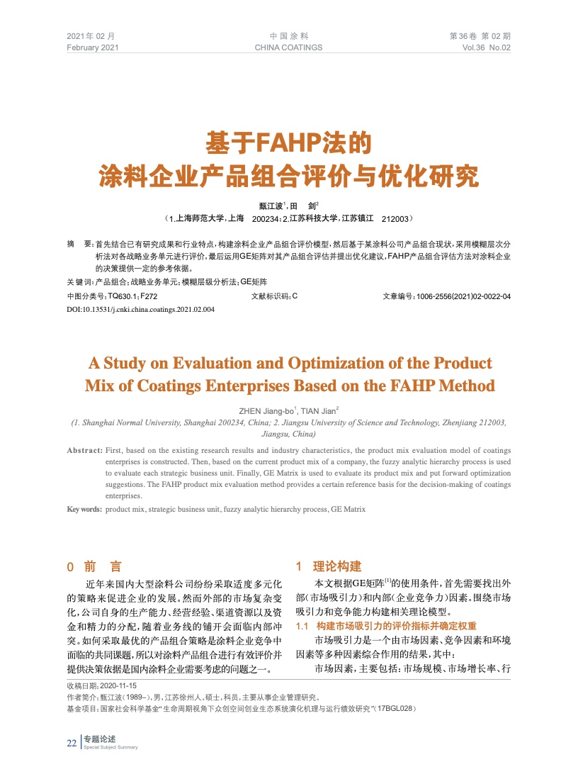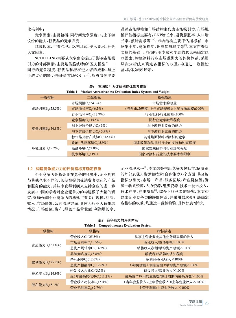基于FAHP法的涂料企業(yè)產(chǎn)品組合評(píng)價(jià)與優(yōu)化研究