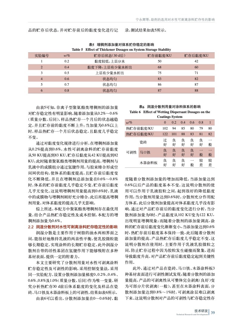 摘要:制備了一種水性家居防護可剝離涂料,分別考察了流變助劑種類及用量、潤濕分散劑用量和消泡劑對水性可剝離涂料貯存性能的影響。結(jié)果表明:流變助劑選用0.6%(質(zhì)量分數(shù),后同)聚氨酯類增稠劑即可滿足該產(chǎn)品長期貯存穩(wěn)定性的要求;添加0.4%潤濕分散劑即可滿足產(chǎn)品貯存穩(wěn)定性及可剝性的要求;有機硅類消泡劑使用對產(chǎn)品的涂膜外觀及黏度有較大的影響。
