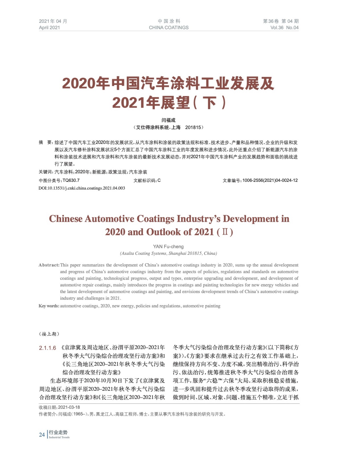 2020年中國汽車涂料工業發展及2021年展望(下)