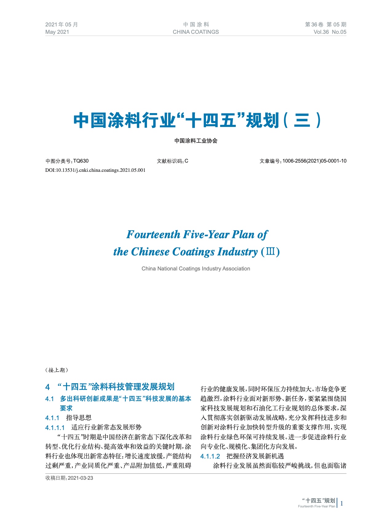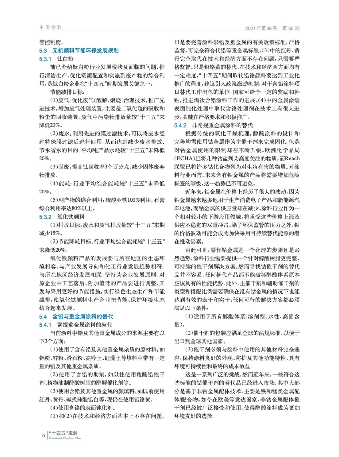 摘要:編者按:2021年3月24日,《中國(guó)涂料行業(yè)“十四五”規(guī)劃》于“2021中國(guó)國(guó)際涂料大會(huì)”期間正式發(fā)布,為中國(guó)涂料行業(yè)未來5年的發(fā)展擘畫了目標(biāo)和方向。為了使涂料行業(yè)及相關(guān)領(lǐng)域及時(shí)深入了解《中國(guó)涂料行業(yè)“十四五”規(guī)劃》的精髓和全貌,本刊從第三期開始全文刊登,并分別解讀重點(diǎn)領(lǐng)域的“十四五”發(fā)展規(guī)劃,以饗讀者。