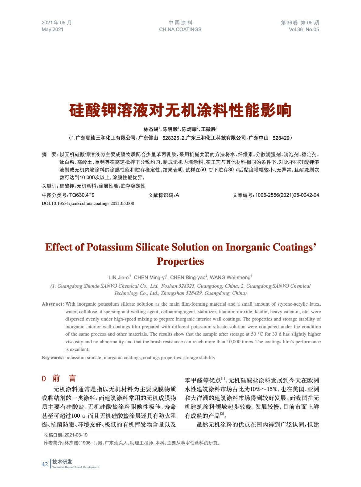發表于2021-07-13 17:14:07| 次閱讀| 來源中國涂料| 作者林杰賜,陳明毅,陳炳耀,王微勝
