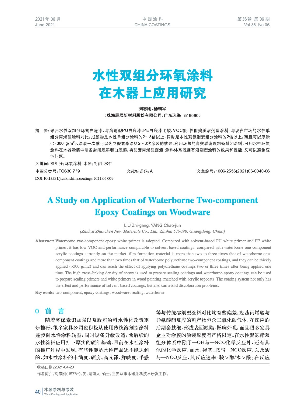 水性雙組分環氧涂料在木器上應用研究