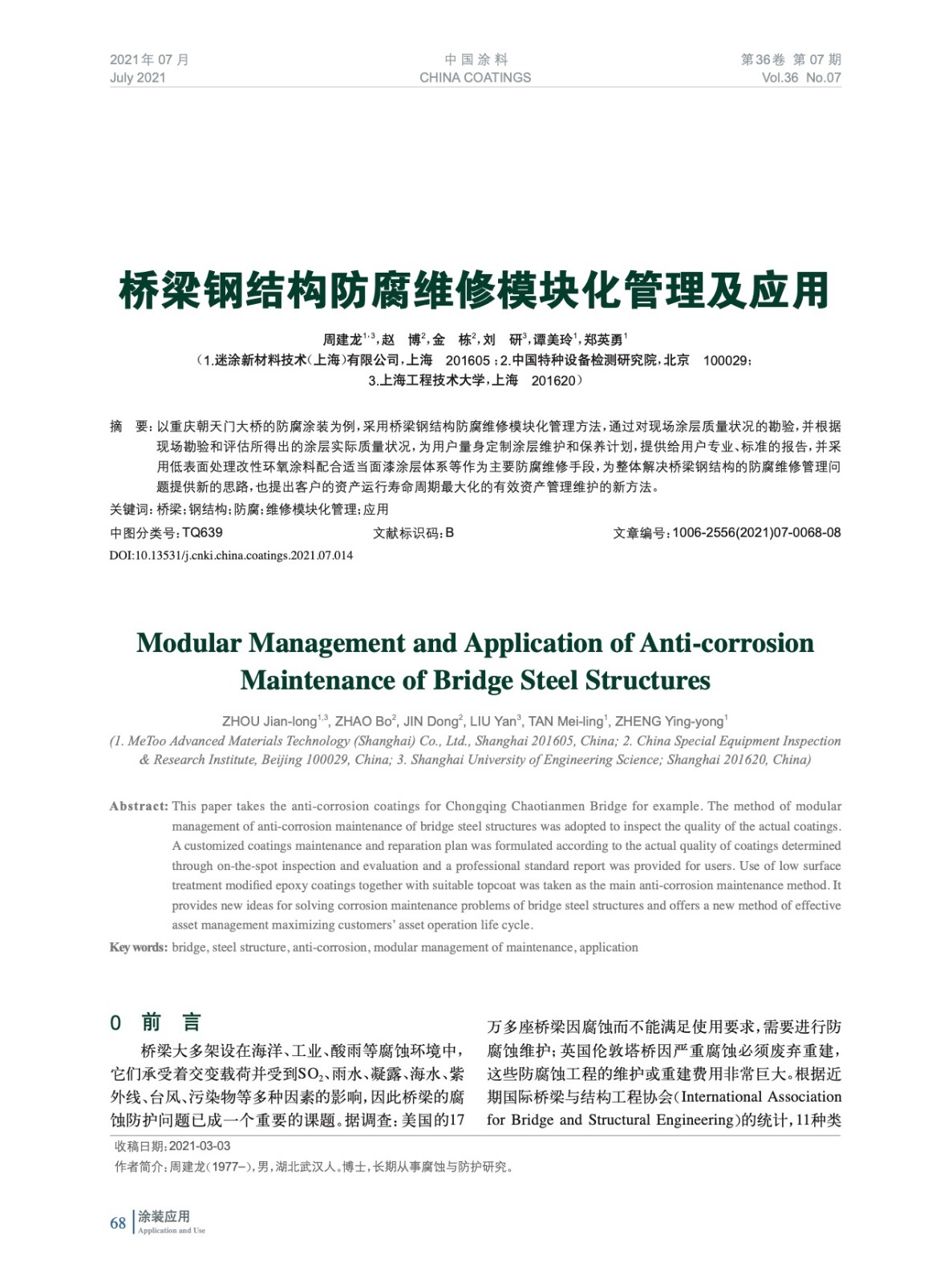 發表于2021-08-30 14:20:22| 次閱讀| 來源中國涂料| 作者周建龍,趙 博,金 棟,劉 研,譚美玲,鄭英勇