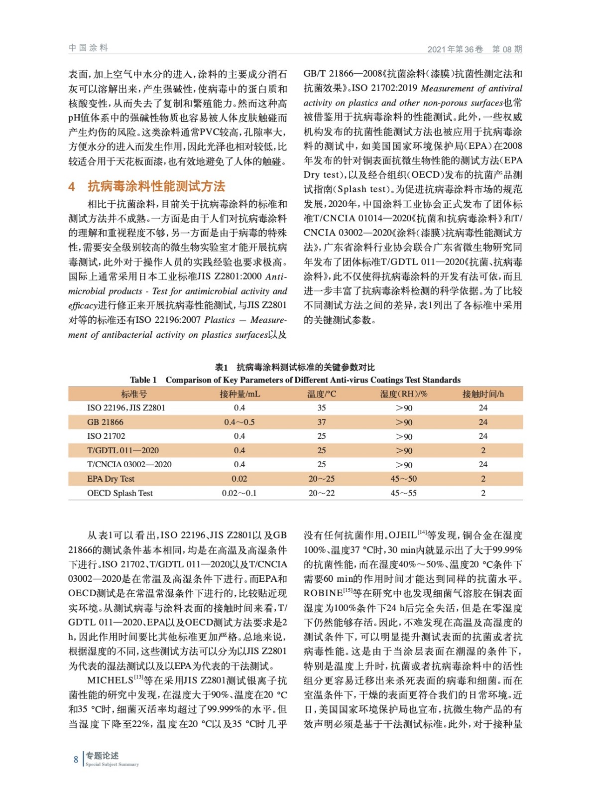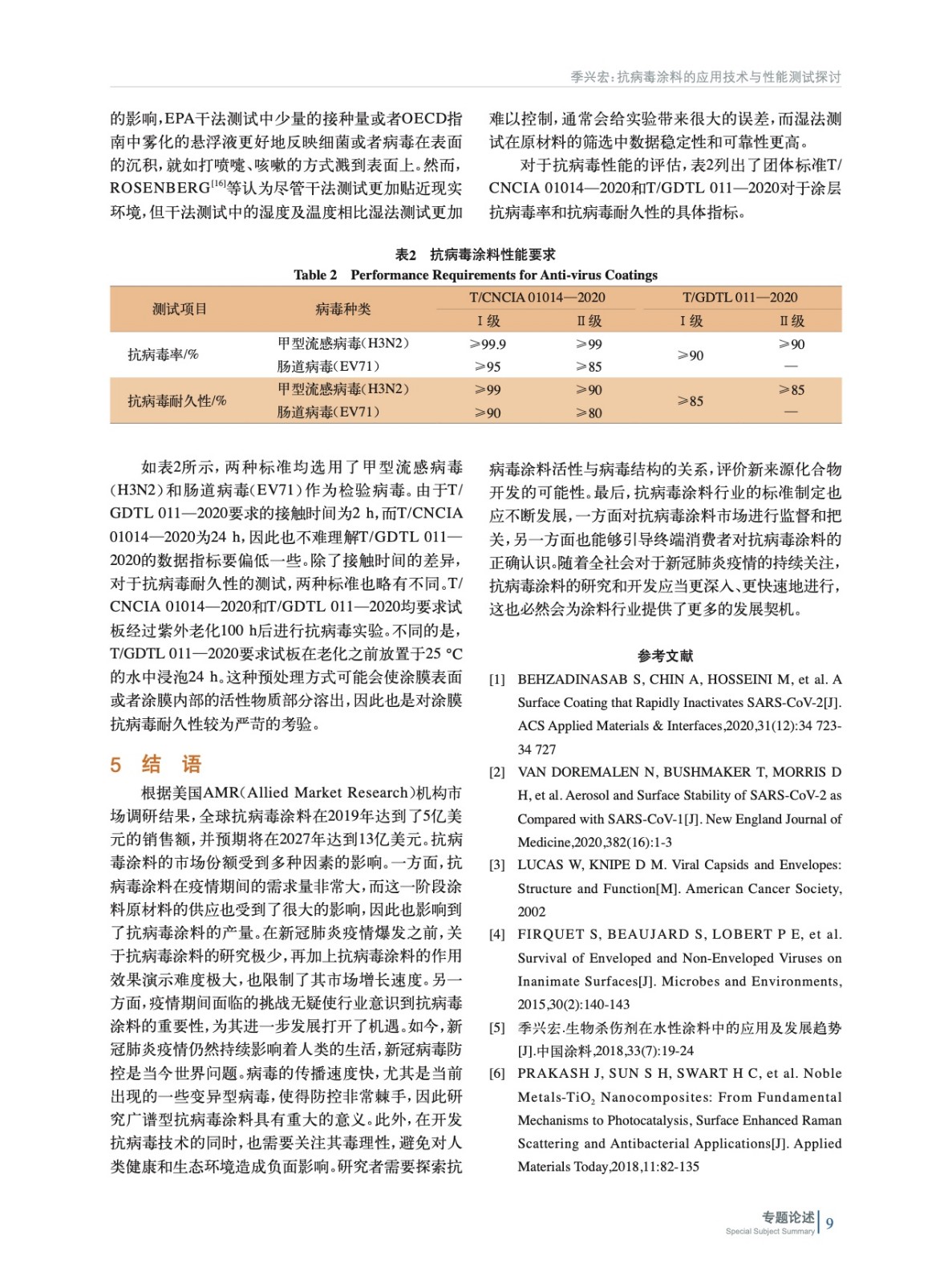 從病毒與細菌的結構差異出發,揭示了抗病毒涂料與抗菌涂料不同的作用機理,并綜述了當前抗病毒涂料的應用技術。最后討論了抗病毒涂料的性能測試方法及指標要求。
