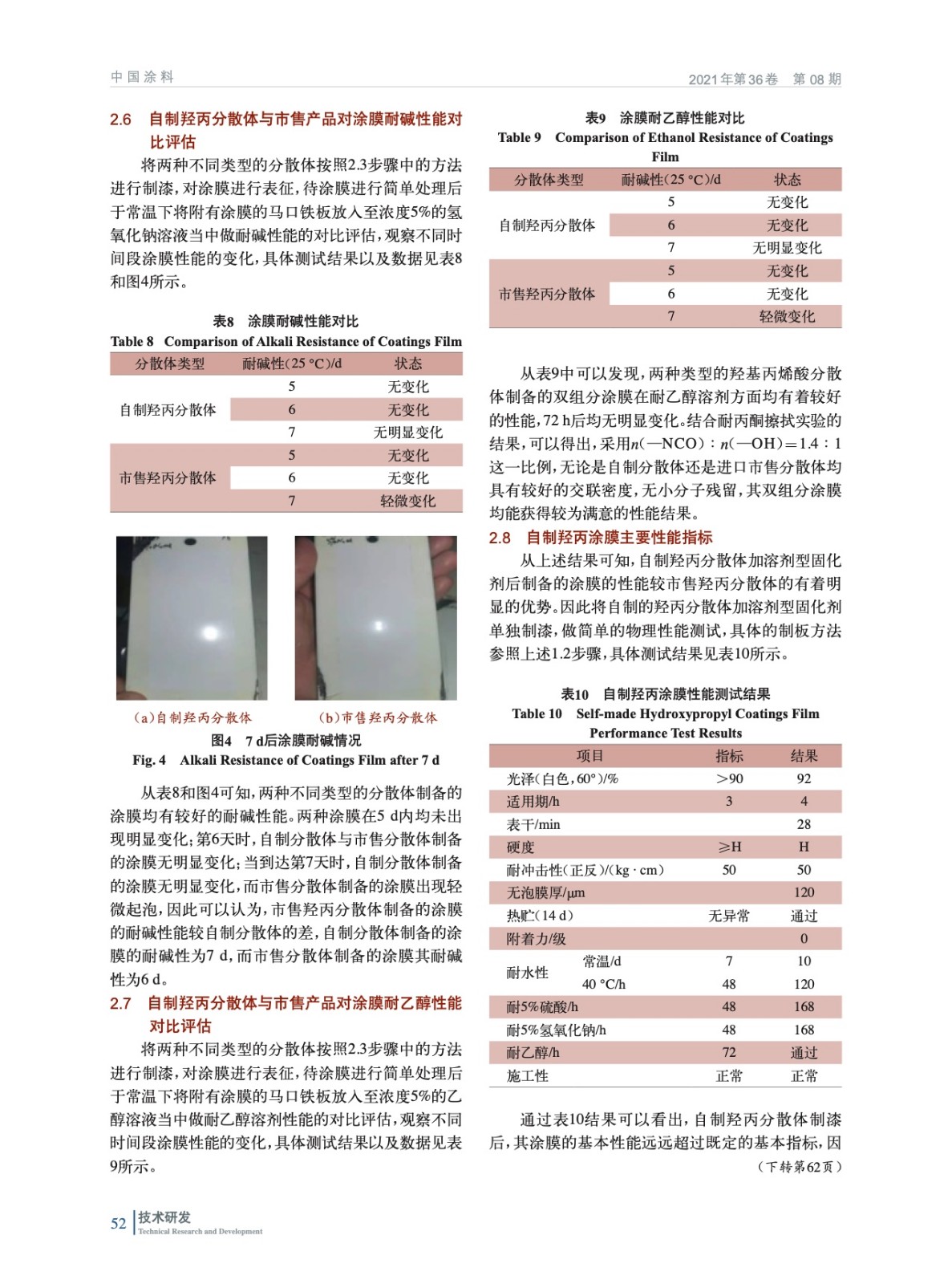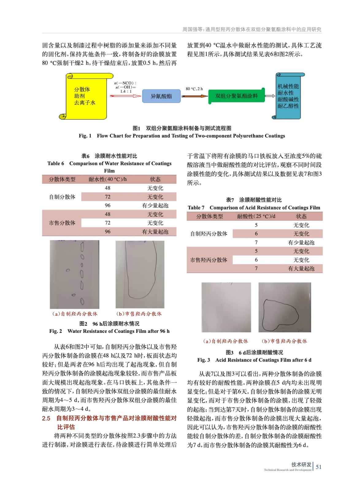 摘要:將自制的羥丙分散體與市售產品做對比實驗研究,對比了添加同比例溶劑型固化劑下雙組分聚氨酯涂膜的基本物理性能以及耐水、耐酸堿等其他化學性能的差異。研究了同樣固化劑添加量條件下,兩種不同分散體聚氨酯涂料配制后的適用期等,為自制的羥丙分散體在雙組分聚氨酯涂料中的應用提供了重要的數據支撐。