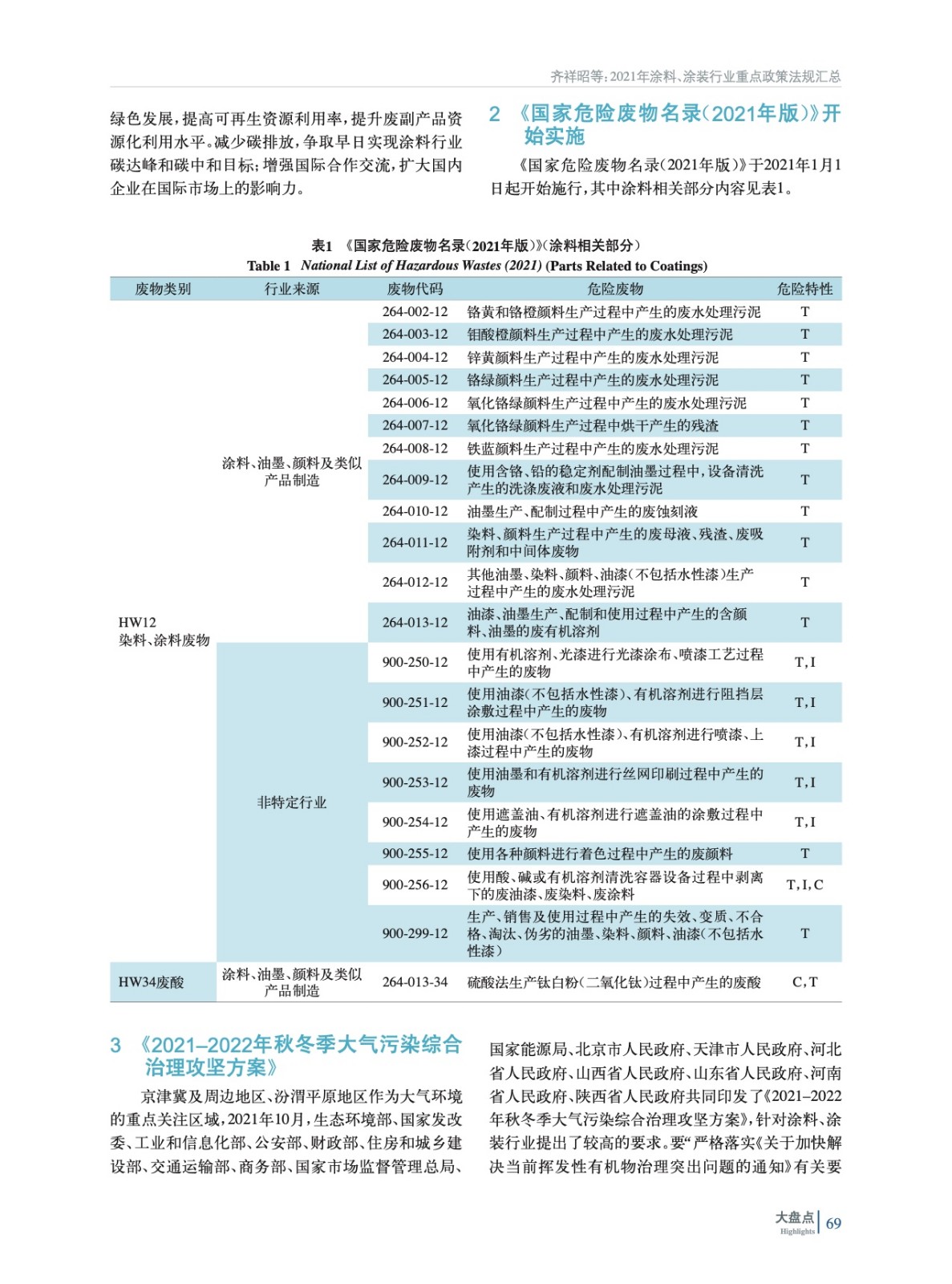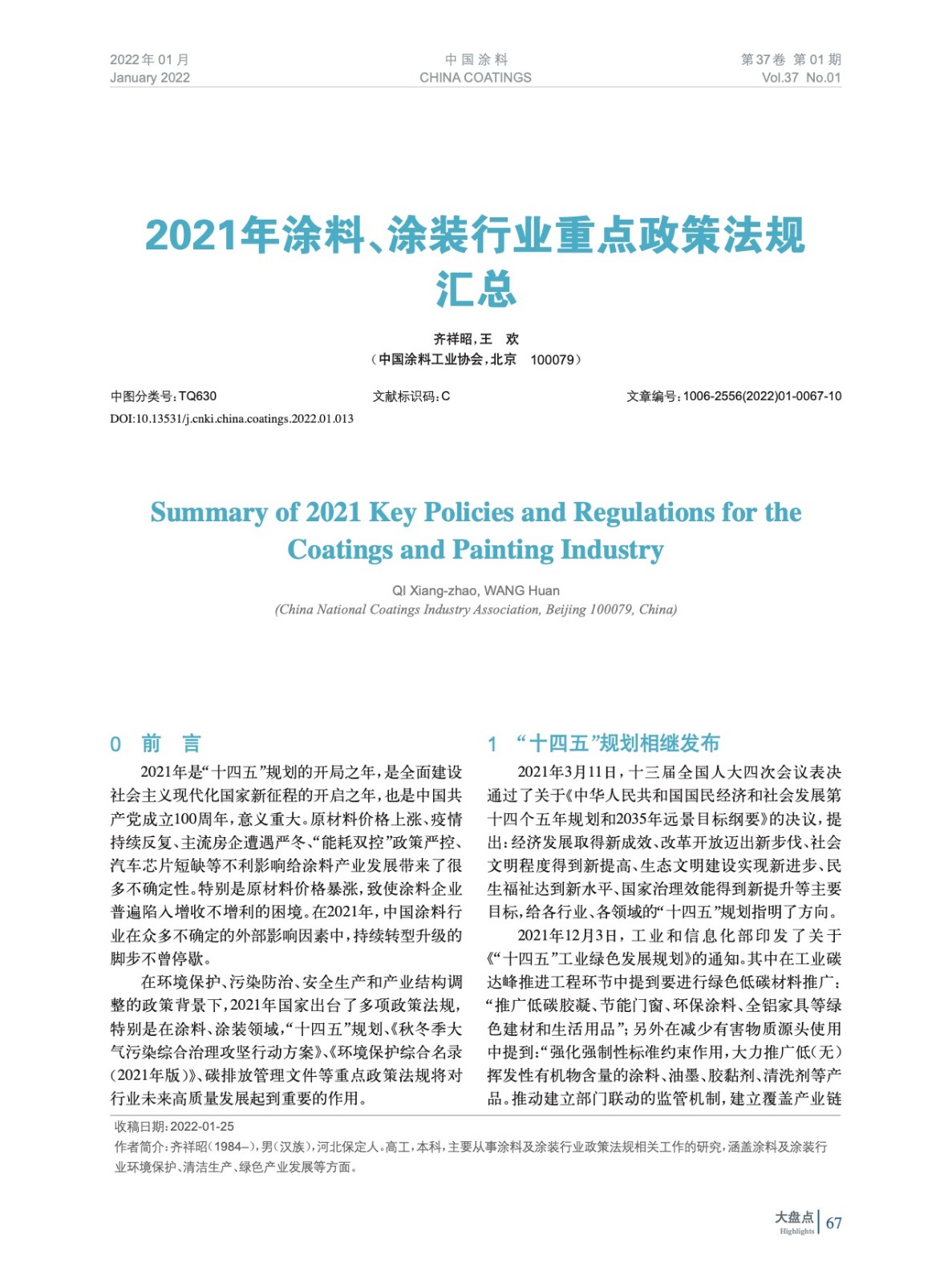 編者按:2021年國家出臺了多項政策法規,特別是在涂料、涂裝領域,“十四五”規劃、《秋冬季大氣污染綜合治理攻堅行動方案》、《環境保護綜合名錄(2021年版)》、碳排放管理文件等重點政策法規將對行業未來高質量發展起到重要的作用。