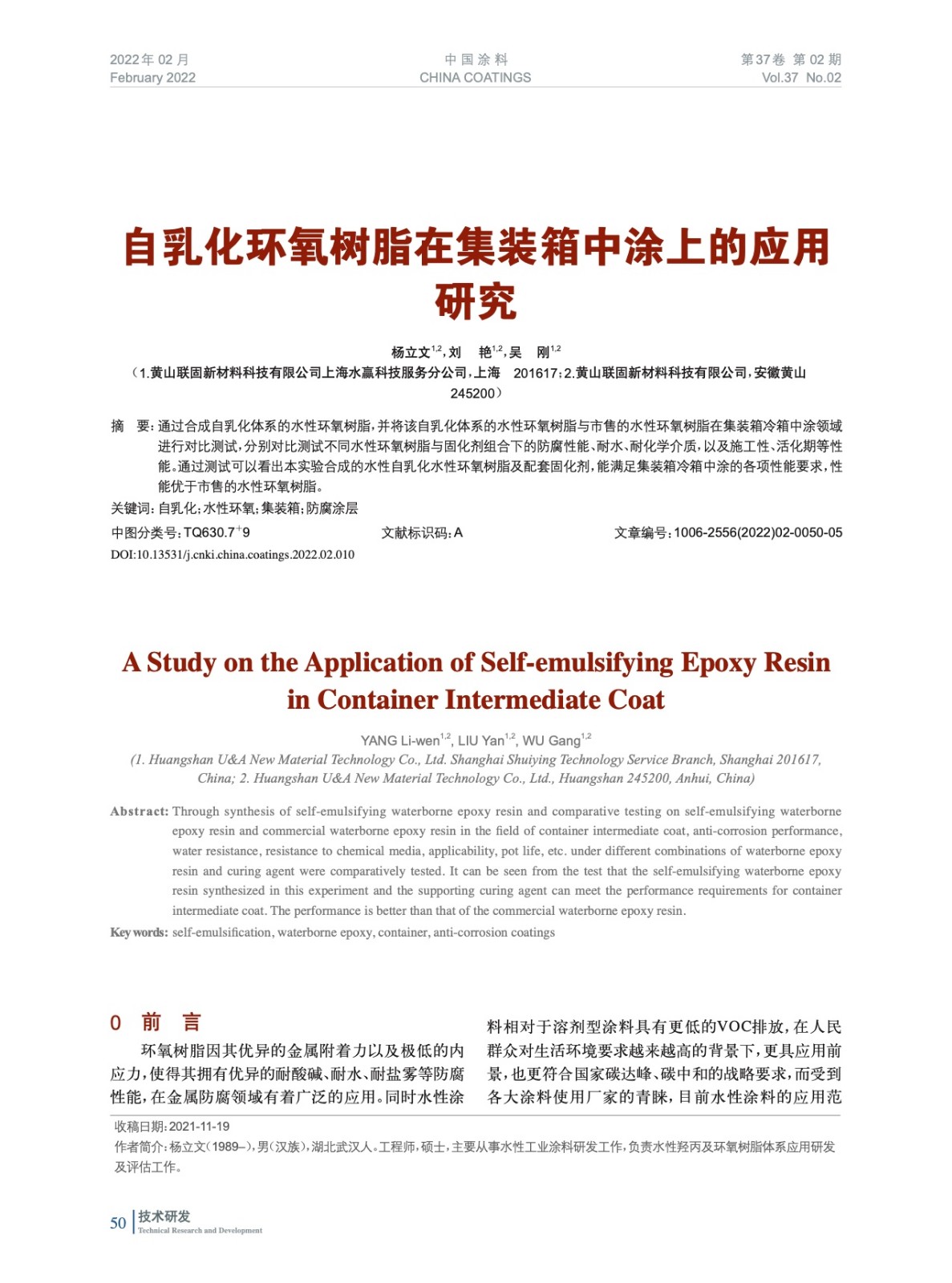 本文系作者@楊立文,劉 艷,吳 剛 授權中國涂料網發表,并經中國涂料網編輯,未經允許不得轉載,如需轉載請聯系chinacoatingnet@vip.163.com