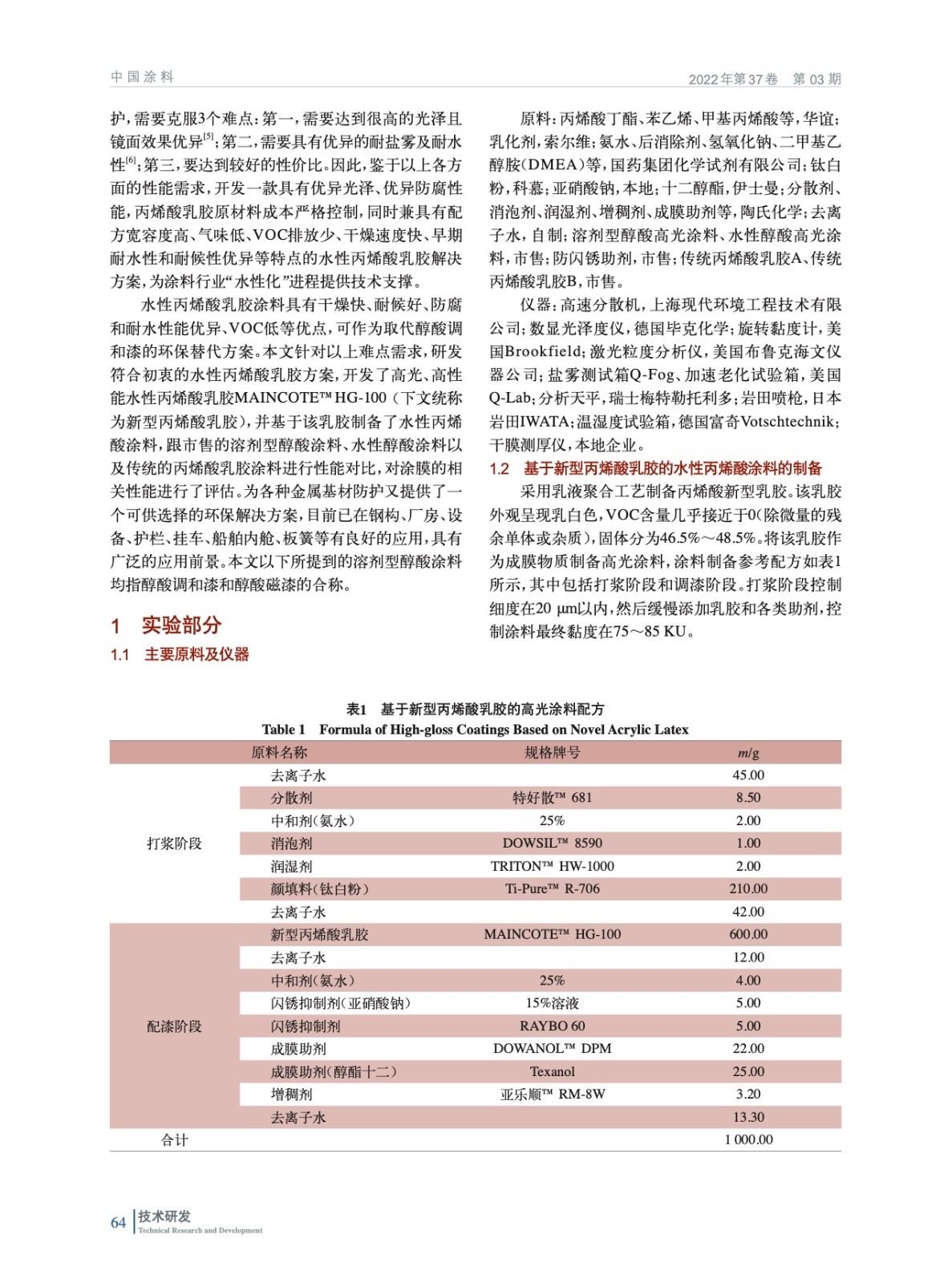 水性高光、高性能丙烯酸乳膠的防腐應用研究