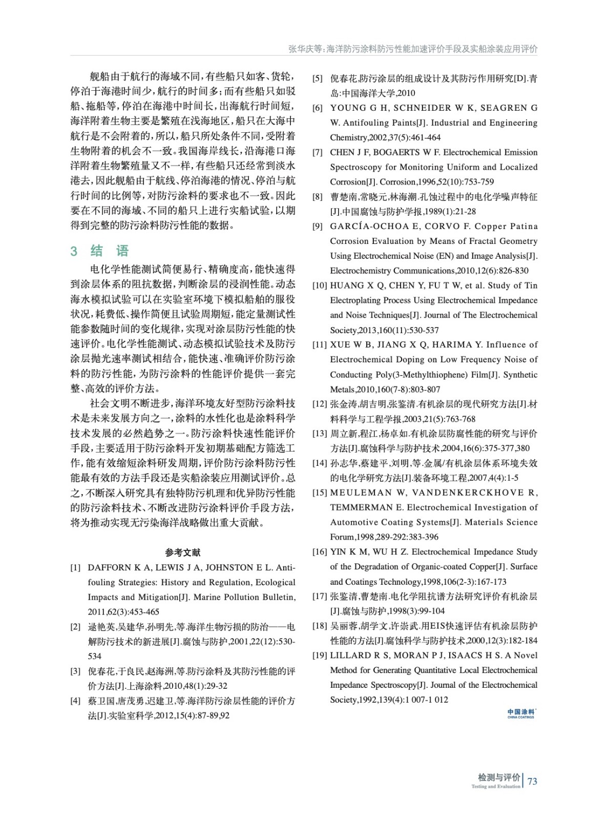 摘要:從防污劑釋放率、淺海掛板、動態模擬實驗、防污涂層拋光速率、涂層的電化學性能測試5個方面介紹了海洋防污涂料開發過程中實驗室常用的幾種防污性能加速評價方法手段,并說明了實船涂裝應用評價對防污涂料研發的重要性,展望了防污涂料的發展前景。
