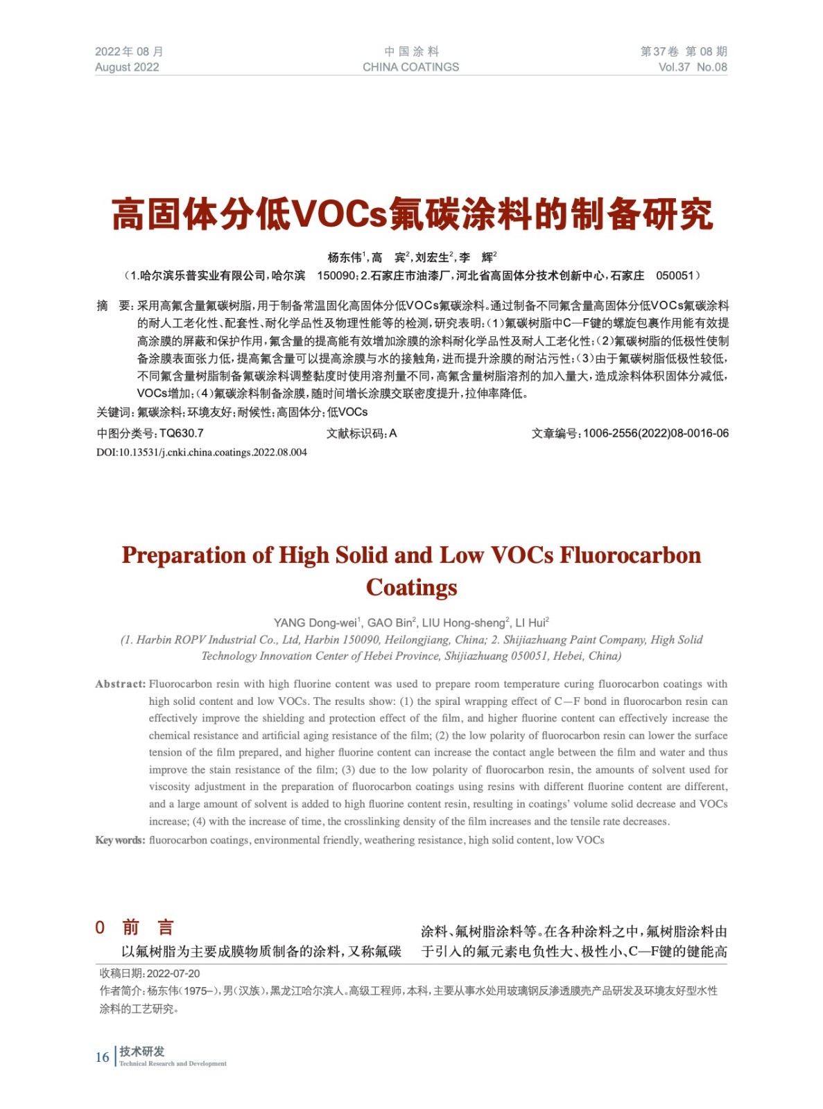 高固體分低VOCs氟碳涂料的制備研究