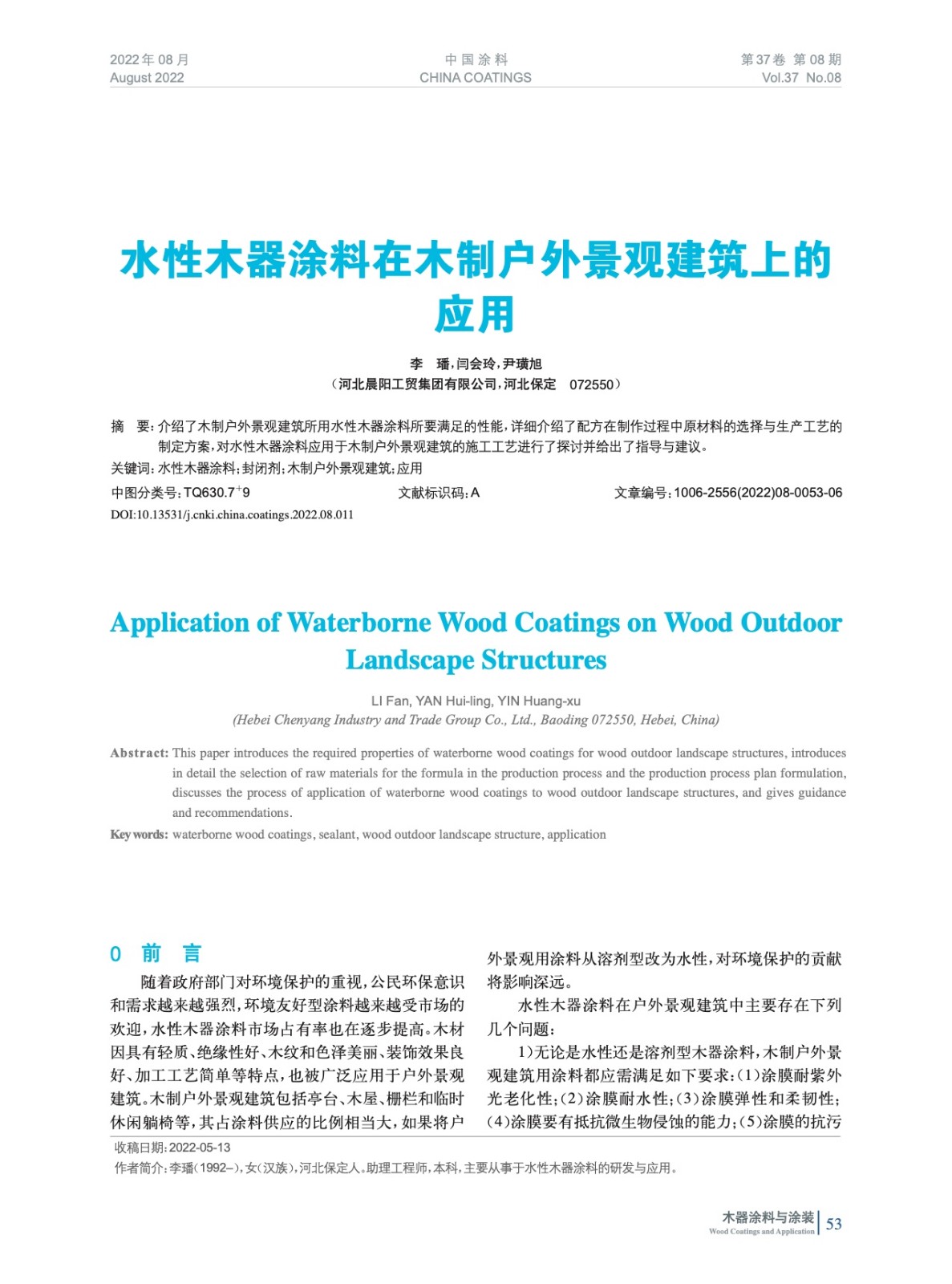 本文系作者@李 璠,閆會玲,尹璜旭 授權中國涂料網發表,并經中國涂料網編輯,未經允許不得轉載,如需轉載請聯系chinacoatingnet@vip.163.com