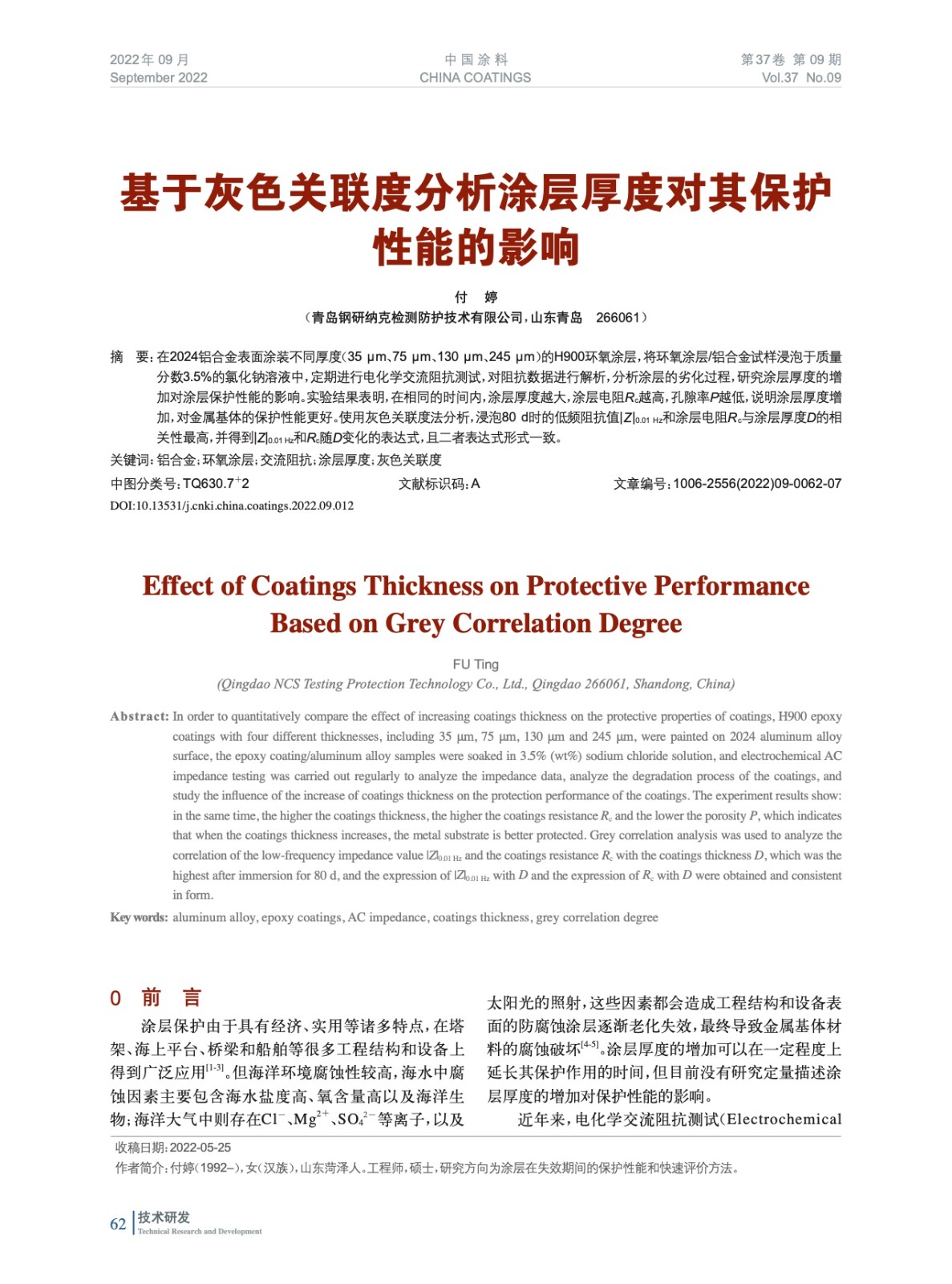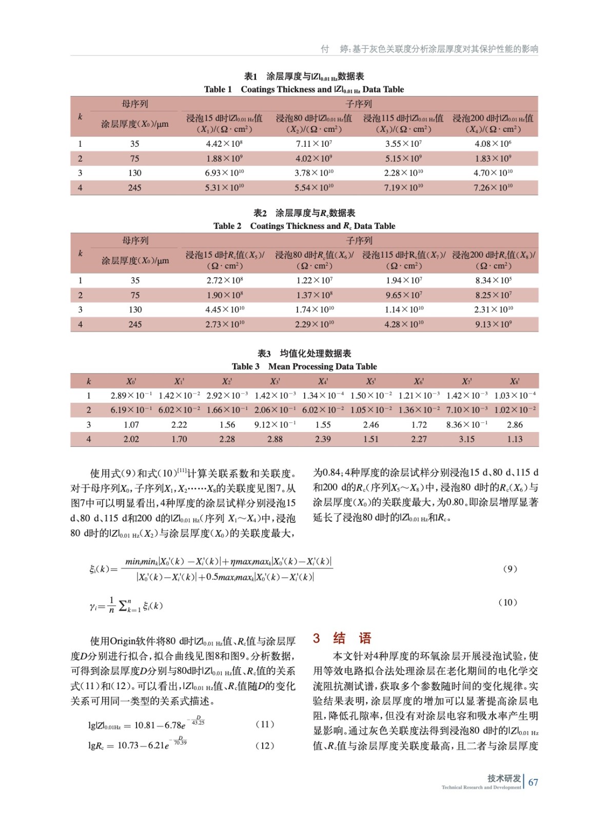 基于灰色關聯度分析涂層厚度對其保護性能的影響