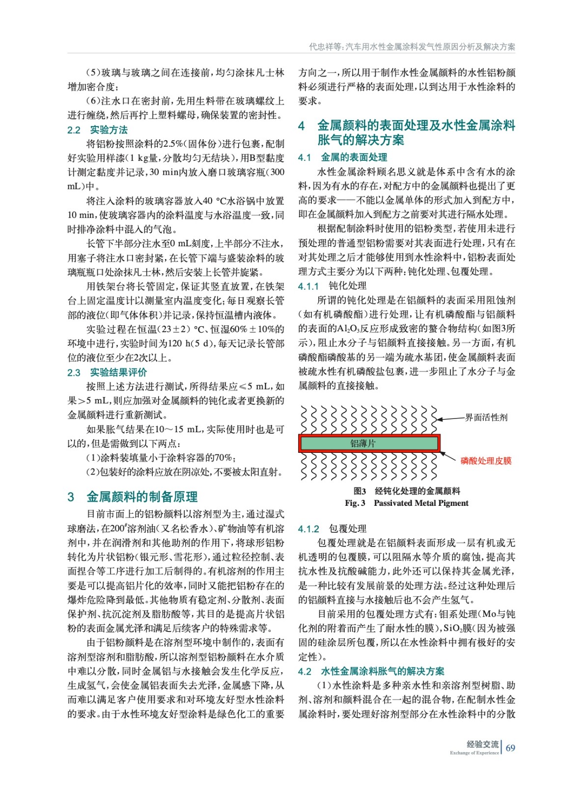 論述了水性金屬涂料發氣的原因、發氣性測試方法,以及通過對金屬顏料(鋁)進行包覆或在加入水性涂料前對鋁顏料先進行鈍化處理來解決水性涂料脹氣的問題。