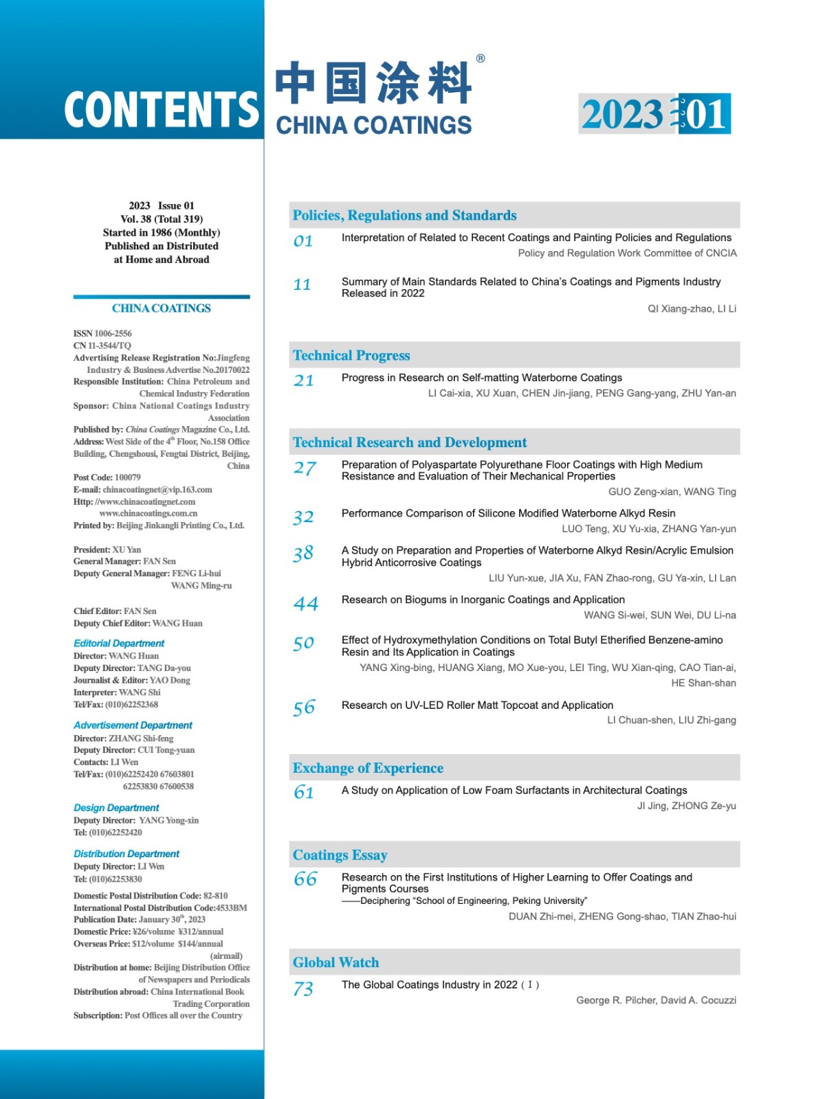 首頁 > 《中國涂料》雜志 > 刊載文章