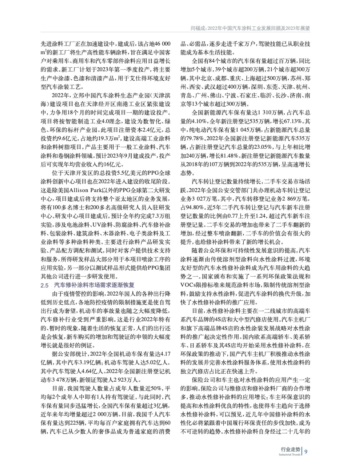 2022年中國(guó)汽車(chē)涂料工業(yè)發(fā)展回顧及2023年展望
