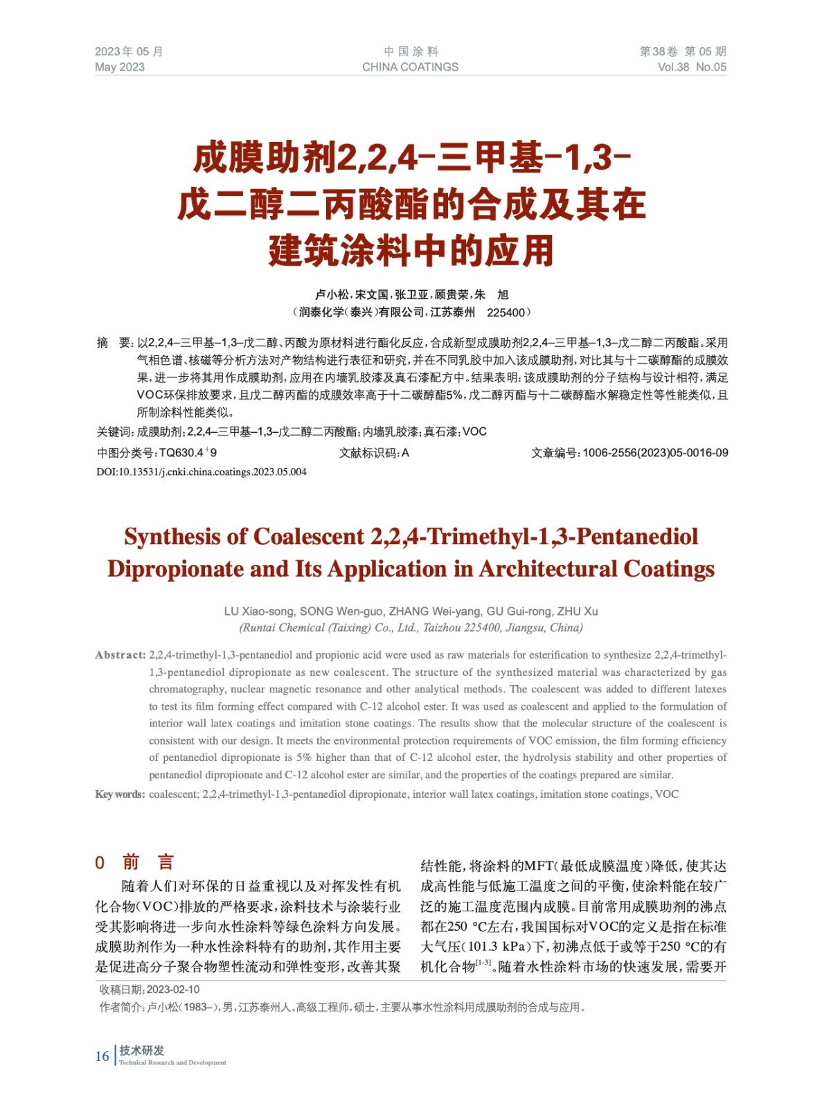 發表于2023-07-28 17:50:22| 次閱讀| 來源中國涂料| 作者盧小松,宋文國,張衛亞,顧貴榮,朱 旭