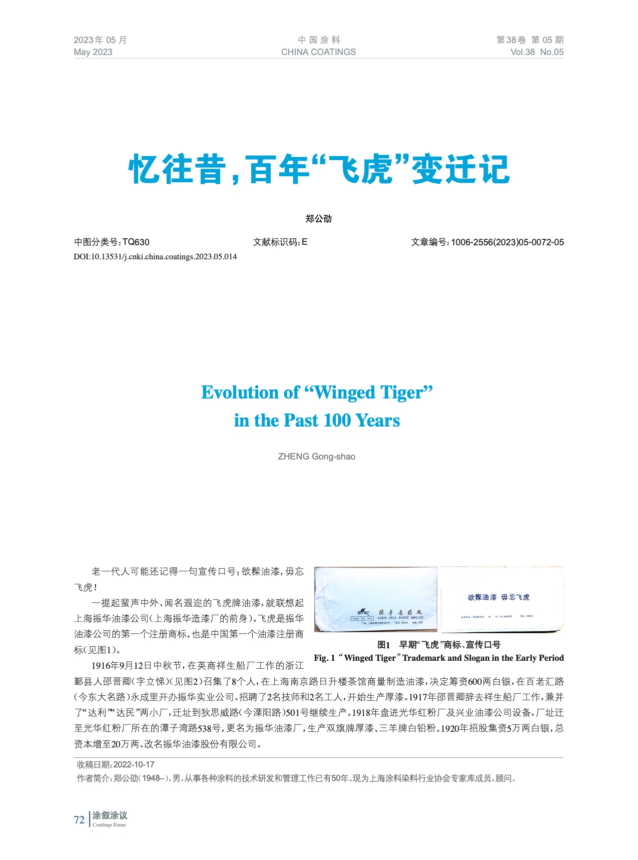 摘要:老一代人可能還記得一句宣傳口號:欲髹油漆,毋忘飛虎!一提起蜚聲中外、聞名遐邇的飛虎牌油漆,就聯想起上海振華油漆公司(上海振華造漆廠的前身)。飛虎是振華油漆公司的第一個注冊商標,也是中國第一個油漆注冊商標。
