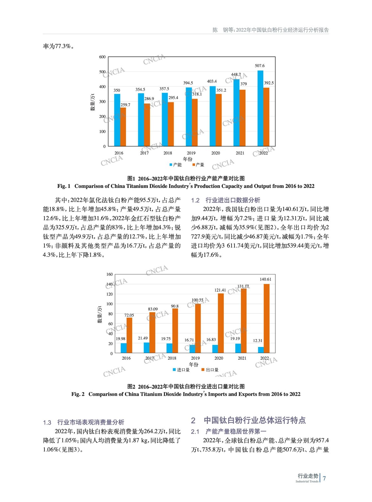 摘要:分析了2022年中國鈦白粉行業生產、進出口、表觀消費量等數據,總結了行業運行特點,簡析了鈦白粉行業重點下游行業——涂料、塑料、造紙行業運行情況,指出了目前中國鈦白粉行業面臨的問題,并指明了未來行業發展趨勢。