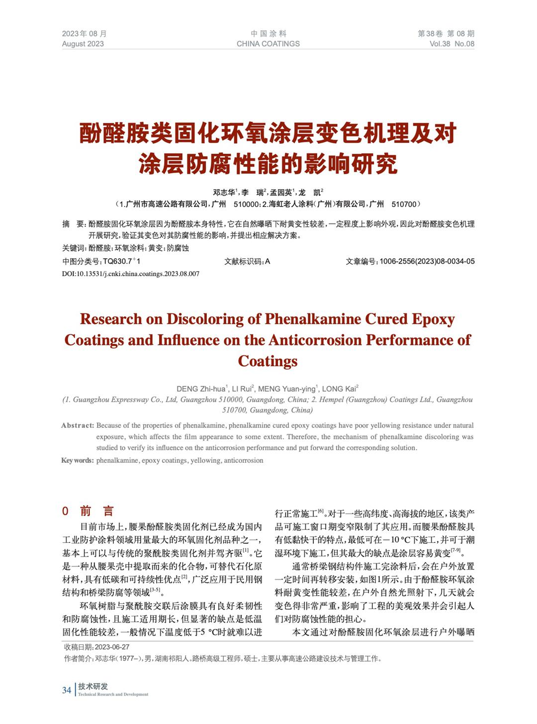 本文系作者@鄧志華,李 瑞,孟園英,龍 凱 授權中國涂料網發表,并經中國涂料網編輯,未經允許不得轉載,如需轉載請聯系chinacoatingnet@vip.163.com