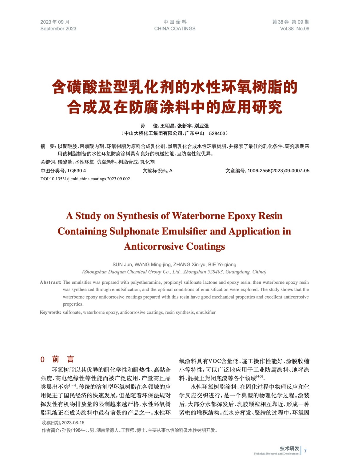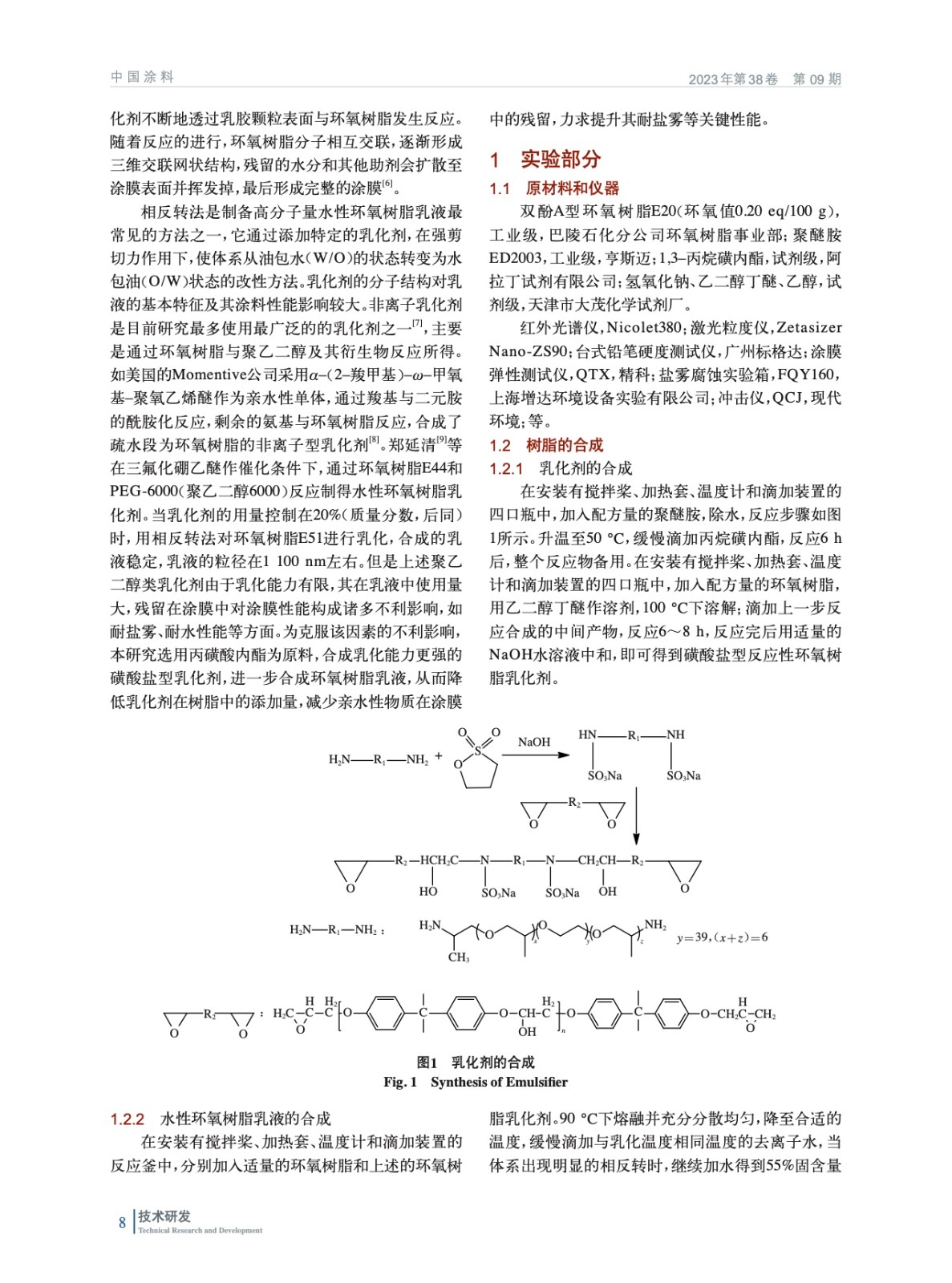 含磺酸鹽型乳化劑的水性環氧樹脂的合成及在防腐涂料中的應用研究