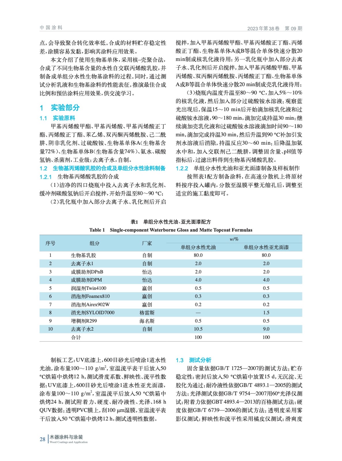 使用生物基單體合成核殼結構型丙烯酸乳膠,研究生物基丙烯酸酯類單體在合成過程中的問題,研究其在單組分水性木器涂料中應用上的性能差異。結果表明:隨著生物基含量的增加,其在消光性、滑爽度、耐水性等方面有提升,但在附著力方面略有影響。