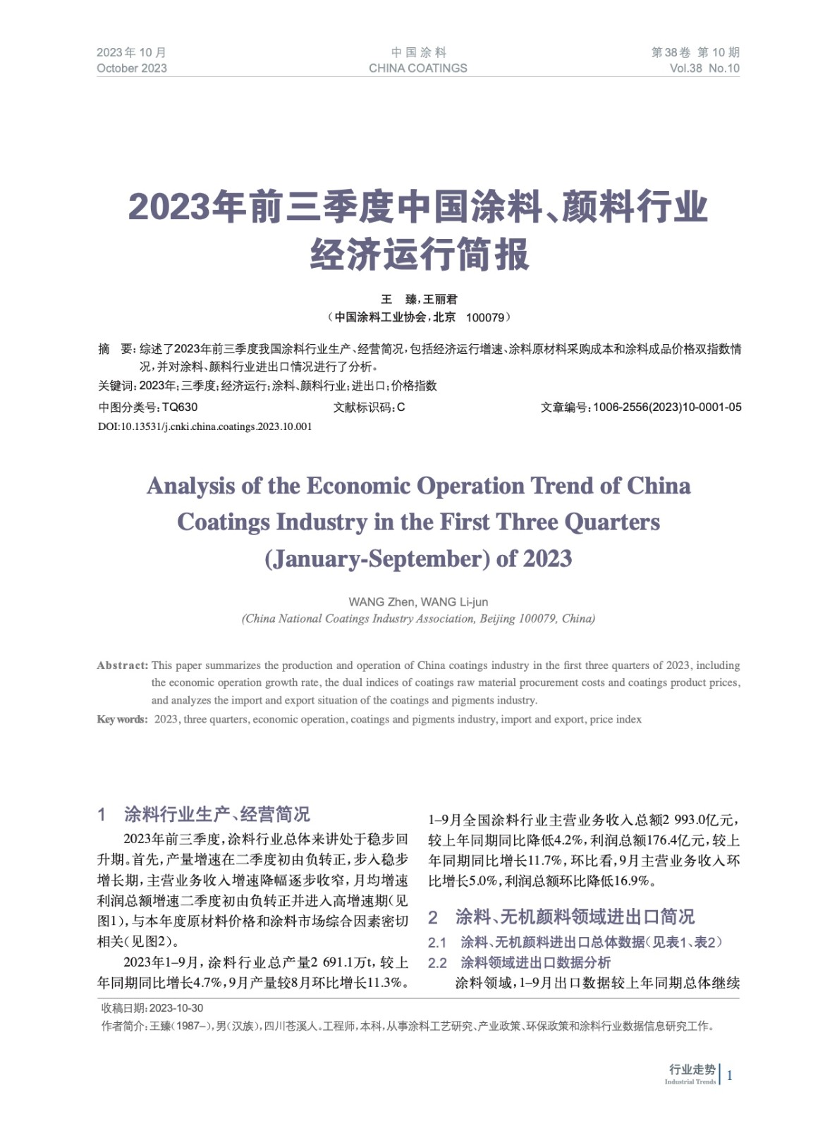 2023年前三季度中國涂料、顏料行業經濟運行簡報