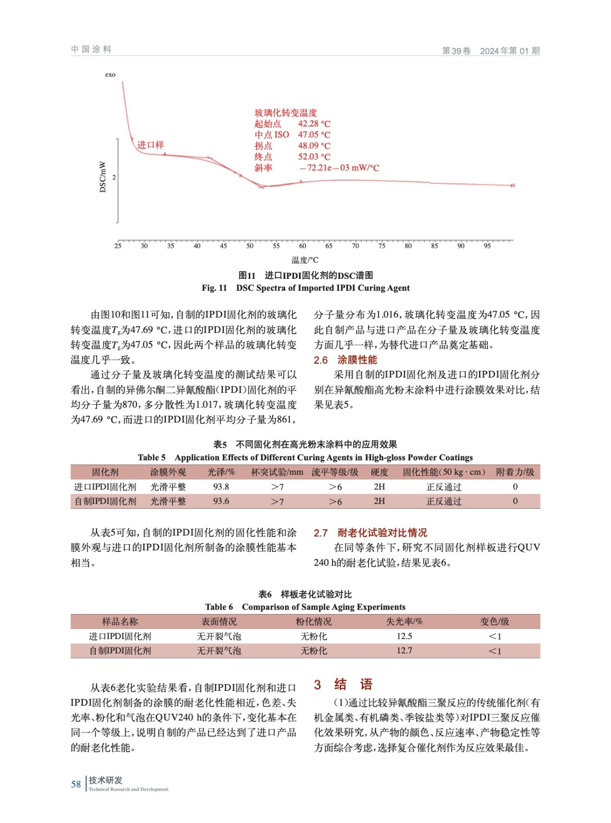 摘要:采用異佛爾酮二異氰酸酯(IPDI)為原料合成了一款聚氨酯固化劑,且研究了反應進程的影響因素(如催化劑的類別及使用量、反應時間和反應溫度等),產品通過FT-IR、GPC和DSC進行結構表征及涂膜應用性能評價,效果較好。
