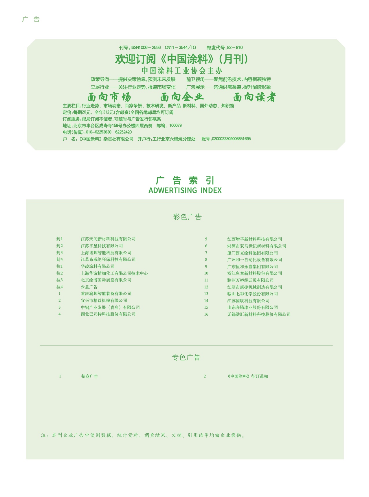 招商廣告、《中國涂料》征訂通知