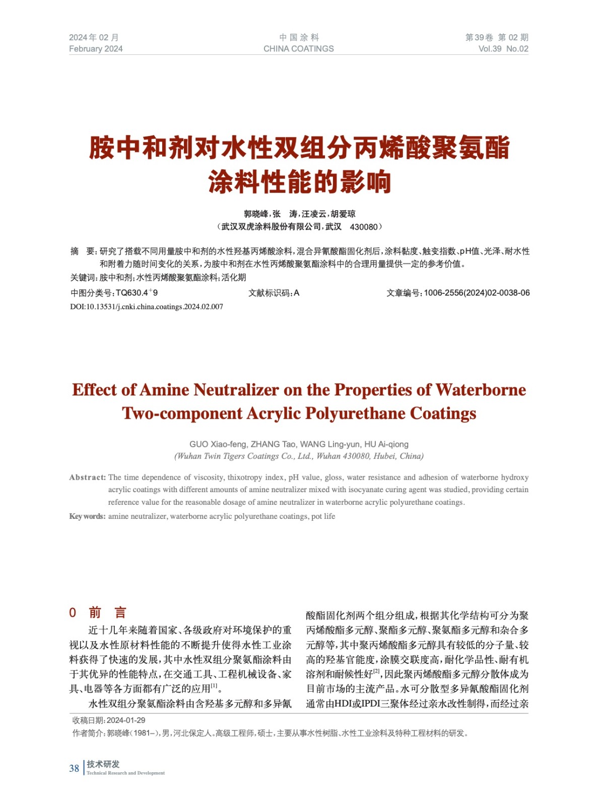 本文系作者@郭曉峰,張 濤,汪凌云,胡愛瓊 授權中國涂料網發表,并經中國涂料網編輯,未經允許不得轉載,如需轉載請聯系chinacoatingnet@vip.163.com