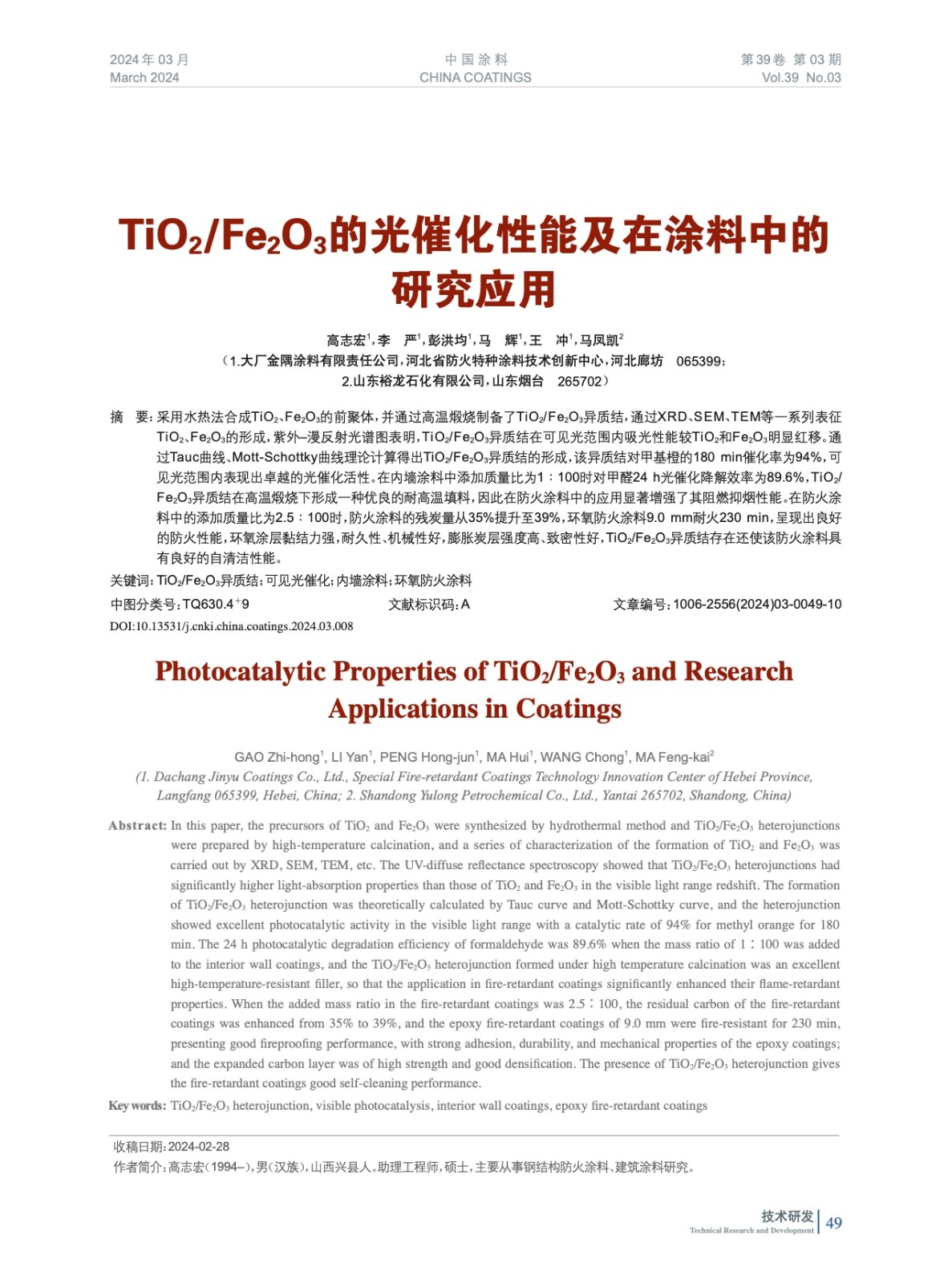 TiO2/Fe2O3的光催化性能及在涂料中的研究應用