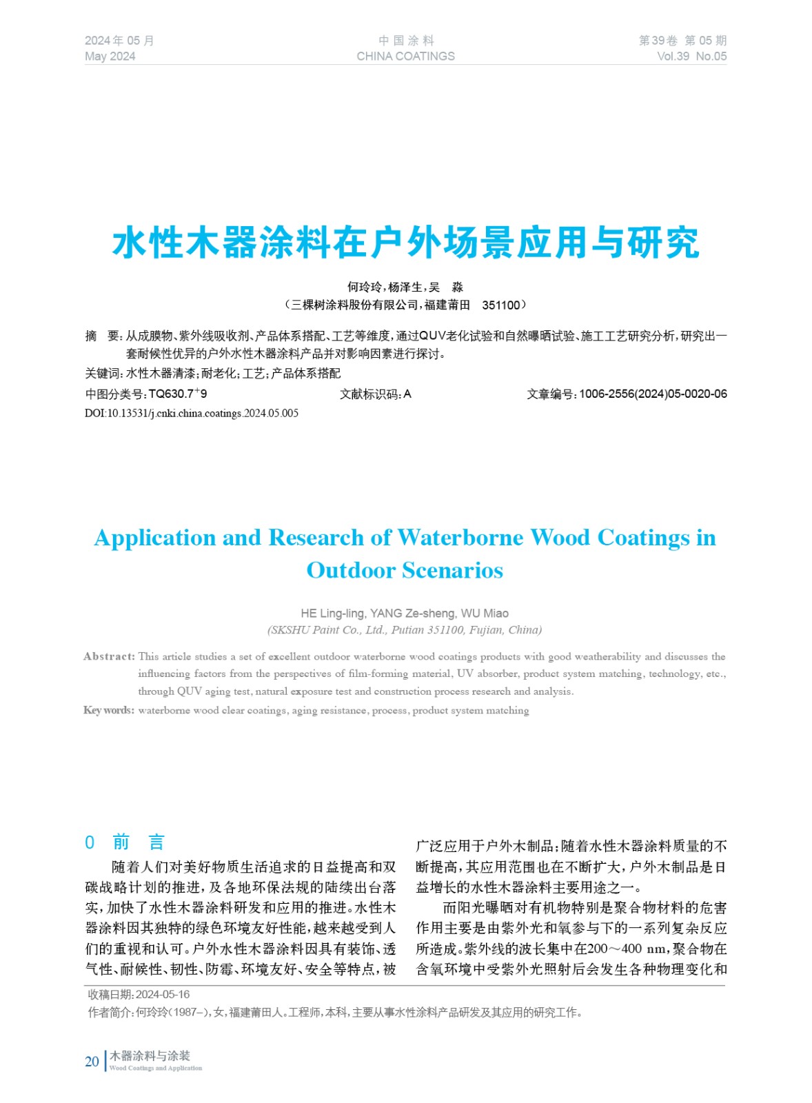 水性木器涂料在戶外場景應用與研究