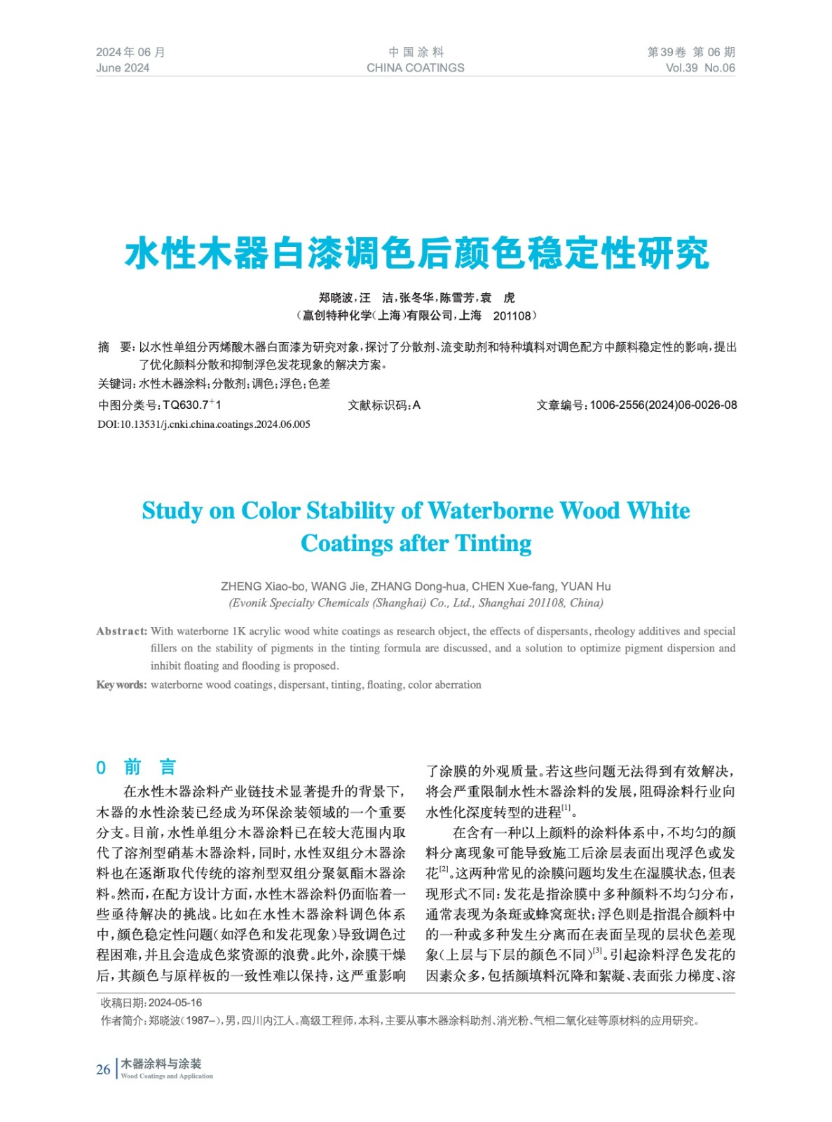 本文系作者@鄭曉波,汪 潔,張冬華,陳雪芳,袁 虎 授權中國涂料網發表,并經中國涂料網編輯,未經允許不得轉載,如需轉載請聯系chinacoatingnet@vip.163.com
