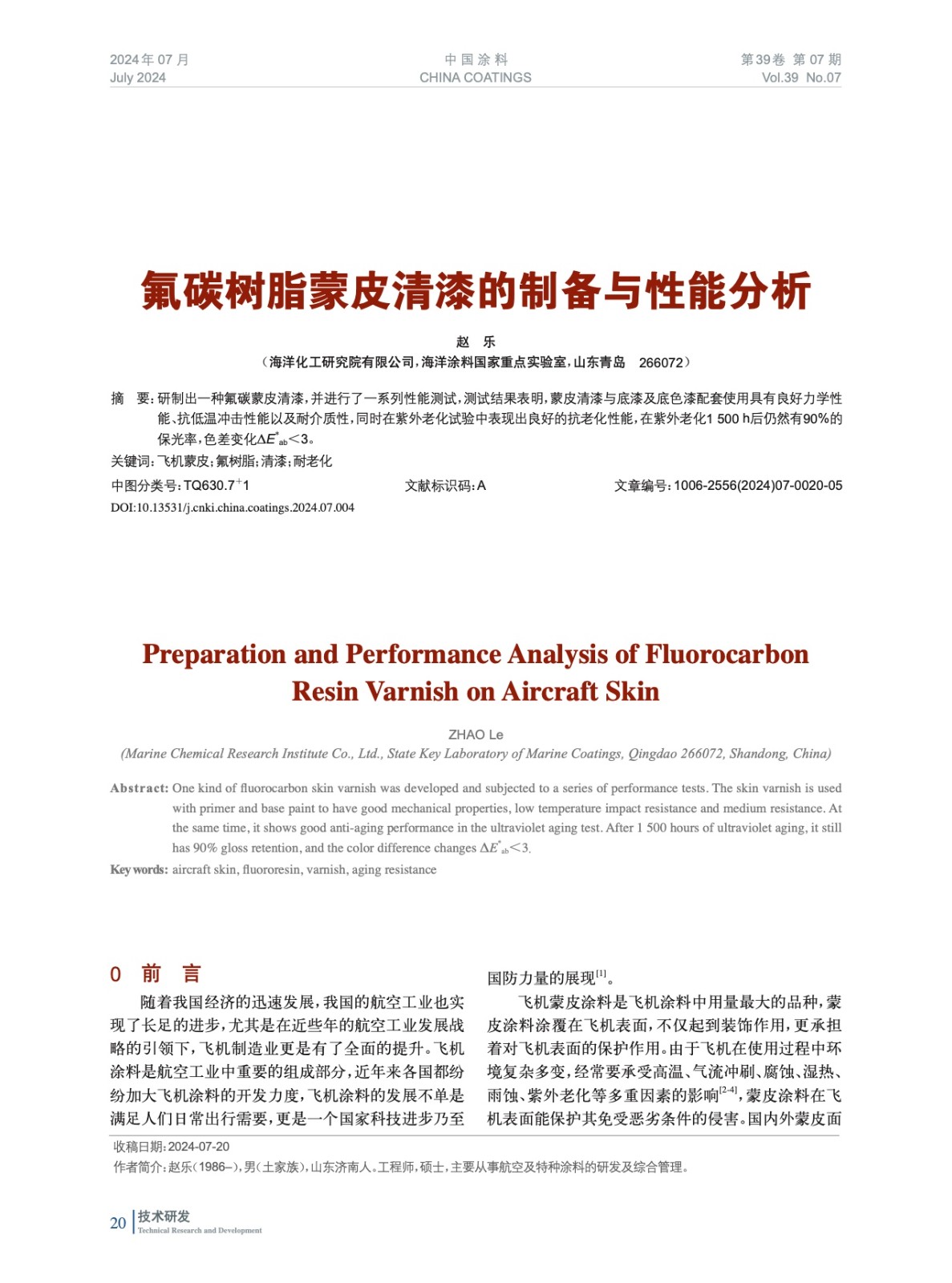 氟碳樹脂蒙皮清漆的制備與性能分析