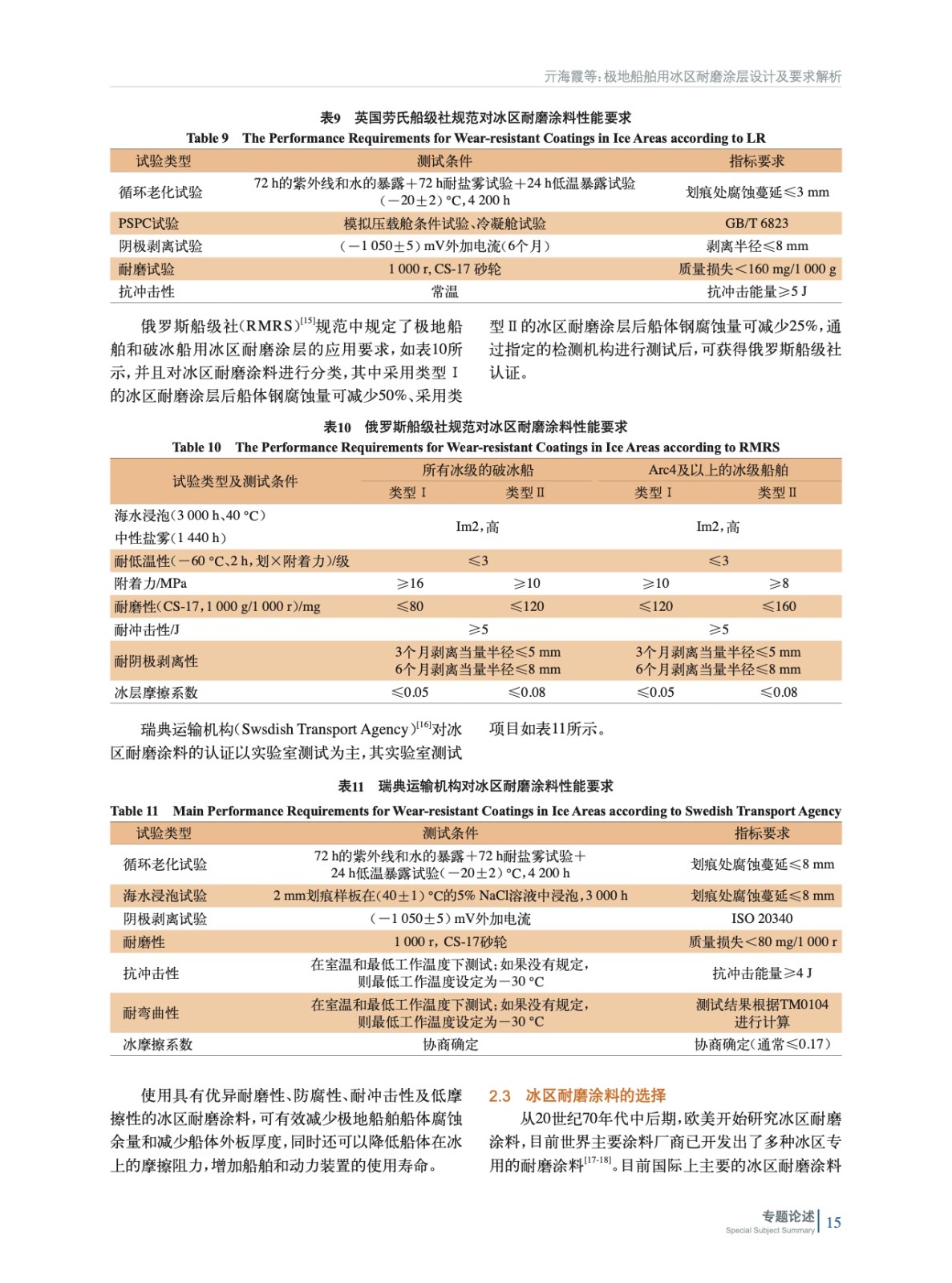 極地船舶用冰區(qū)耐磨涂層設計及要求解析