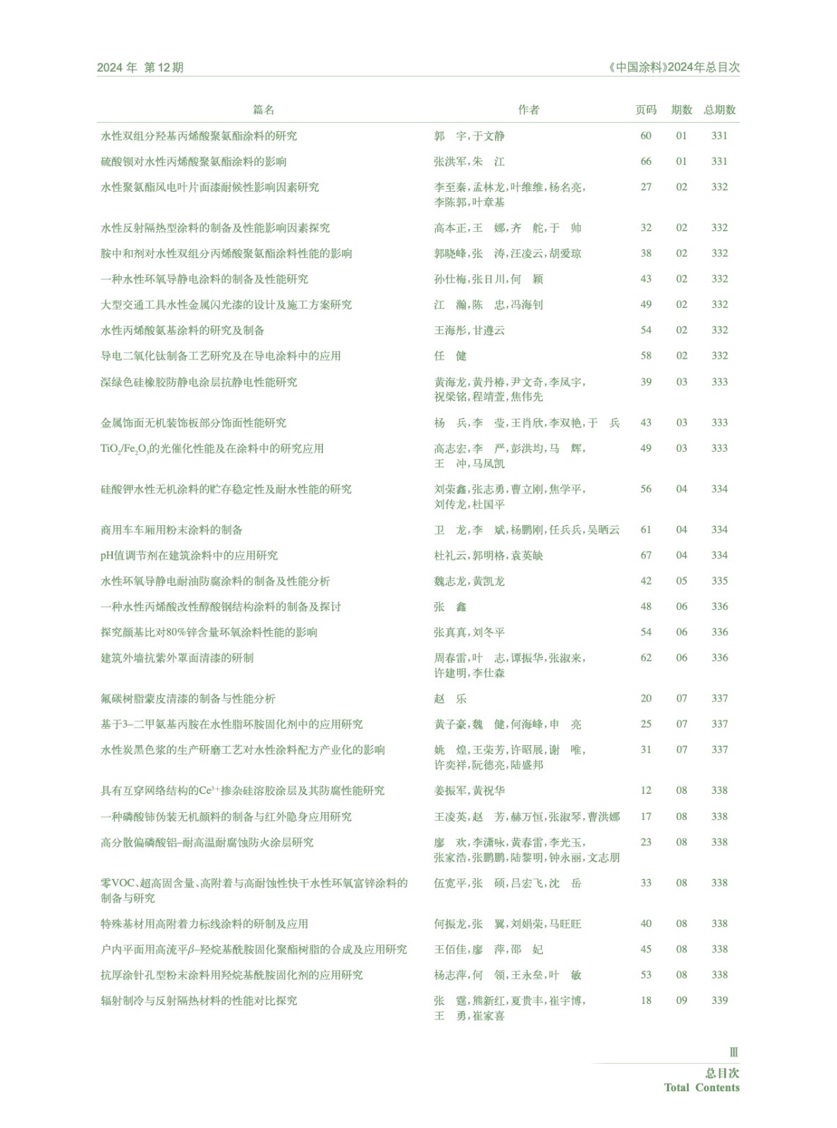 Ⅰ-Ⅵ《中國涂料》2024年總目次