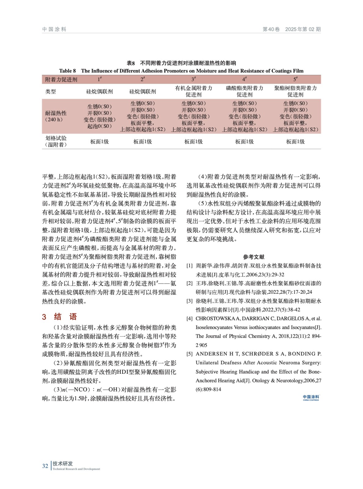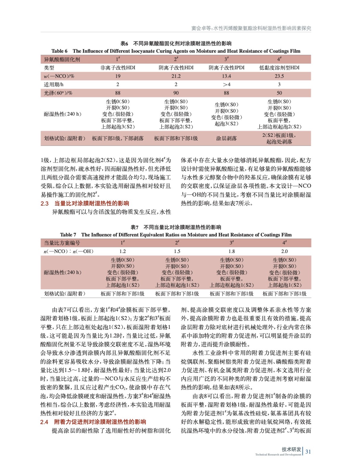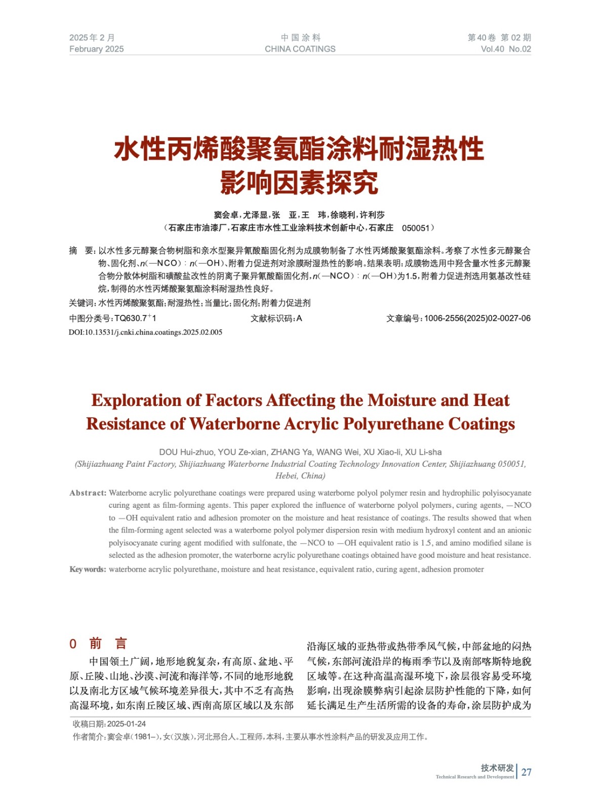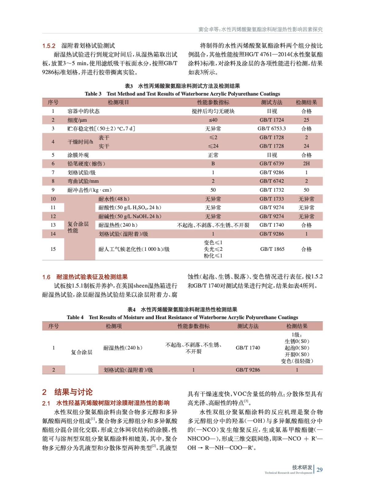 水性丙烯酸聚氨酯涂料耐濕熱性影響因素探究