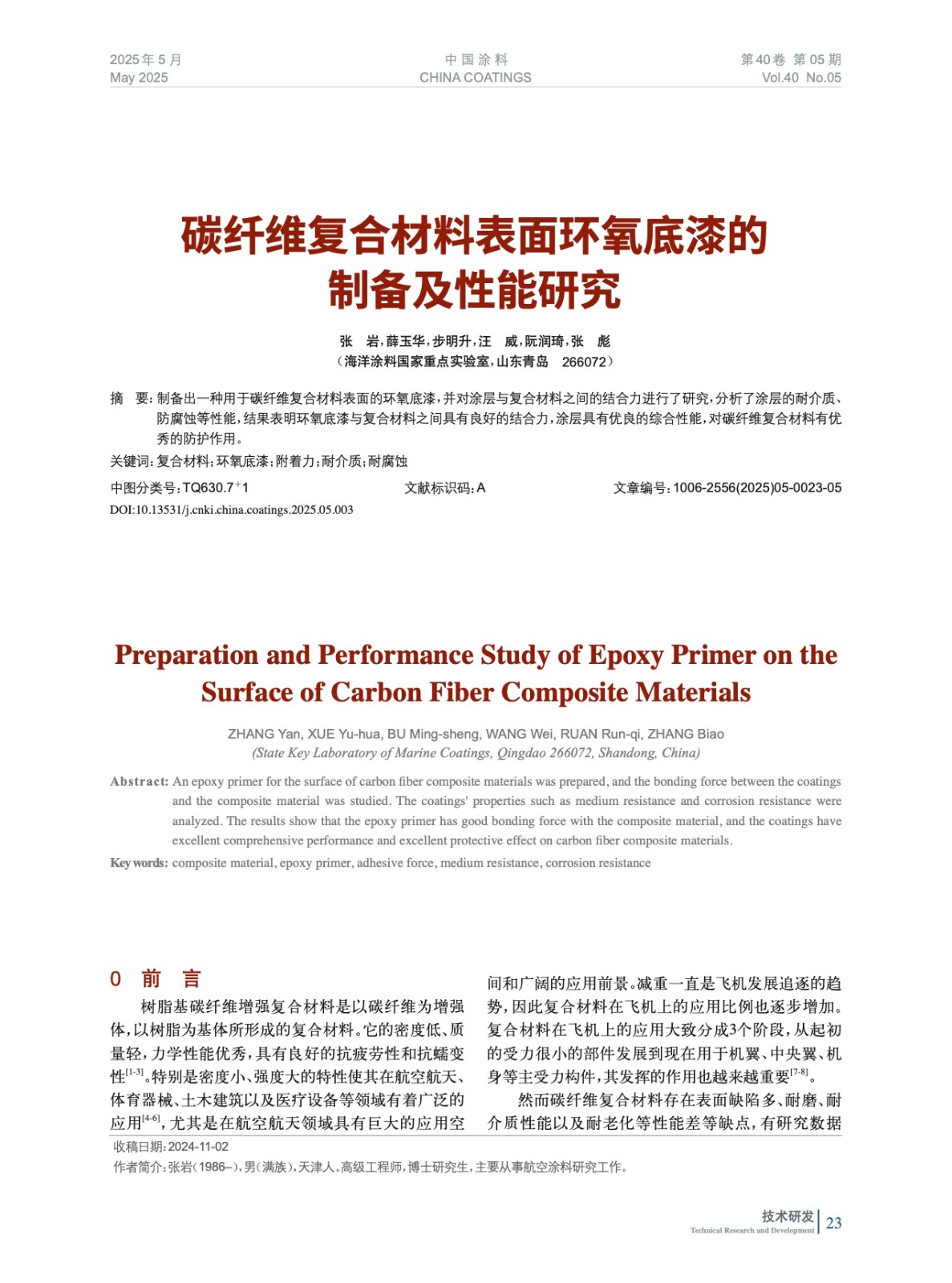 本文系作者@張 巖,薛玉華,步明升,汪 威,阮潤琦,張 彪 授權中國涂料網發表,并經中國涂料網編輯,未經允許不得轉載,如需轉載請聯系chinacoatingnet@vip.163.com
