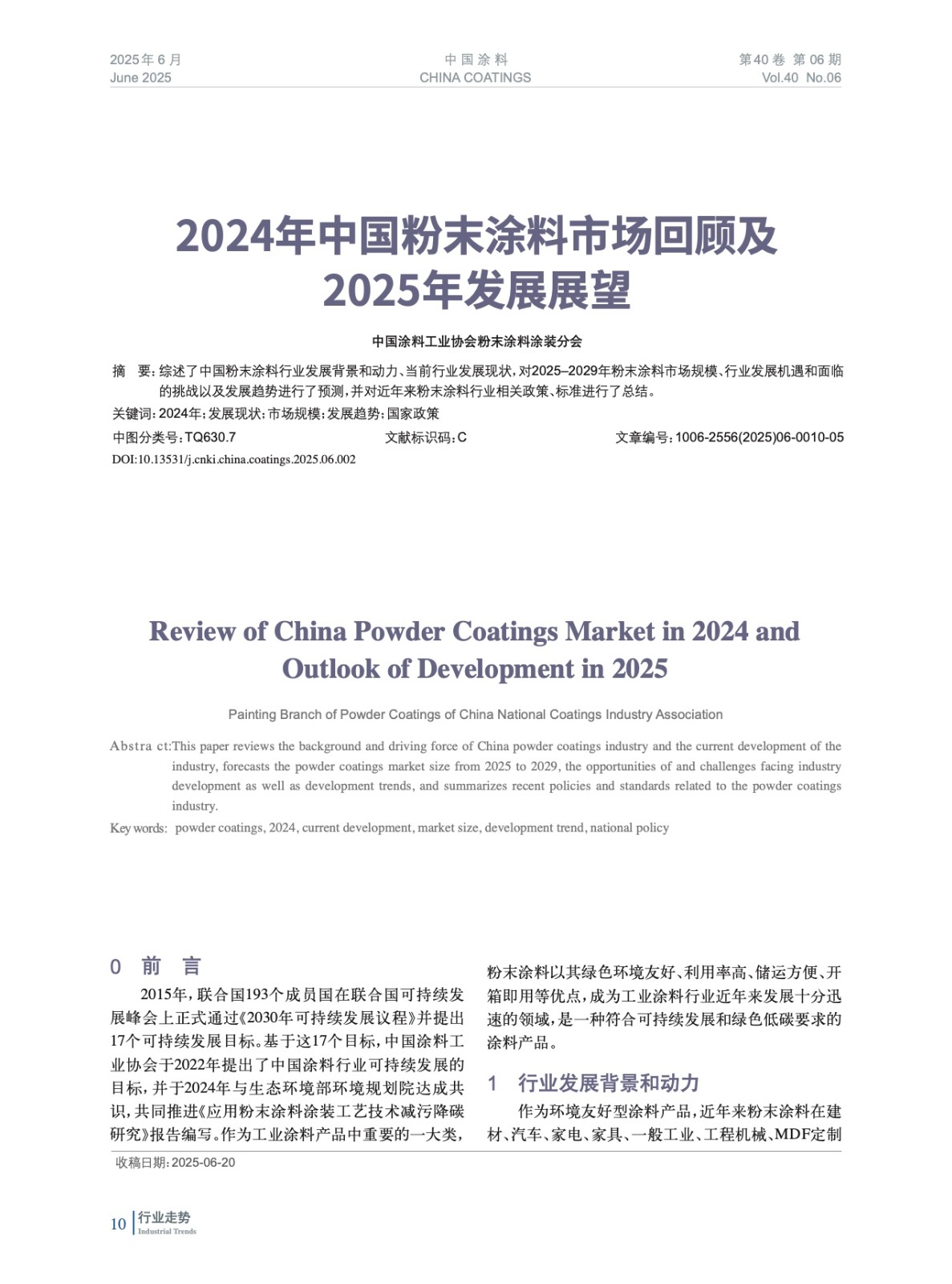 綜述了中國粉末涂料行業發展背景和動力、當前行業發展現狀,對2025–2029年粉末涂料市場規模、行業發展機遇和面臨的挑戰以及發展趨勢進行了預測,并對近年來粉末涂料行業相關政策、標準進行了總結。