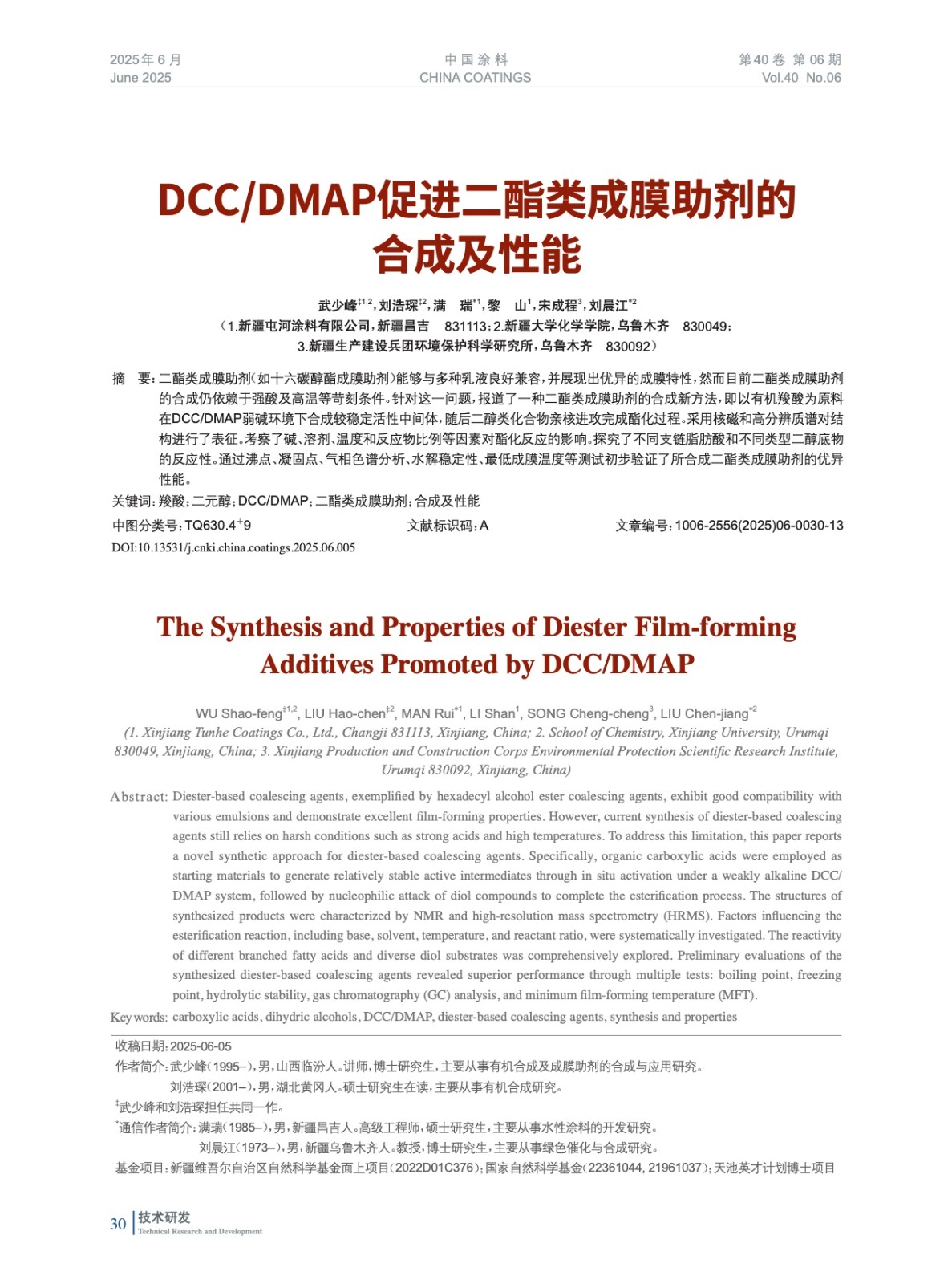 DCC/DMAP促進二酯類成膜助劑的合成及性能