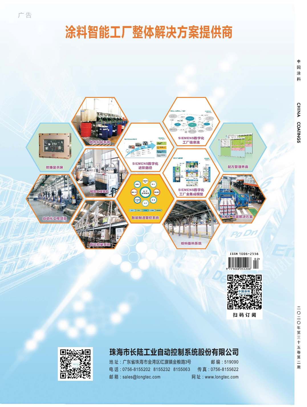 封1:朗盛特殊化學品有限公司;封2:上海保立佳化工有限公司;封3:阿克蘇諾貝爾太古漆油(上海)有限公司;封4:珠海市長陸工業自動控制系統股份有限公司