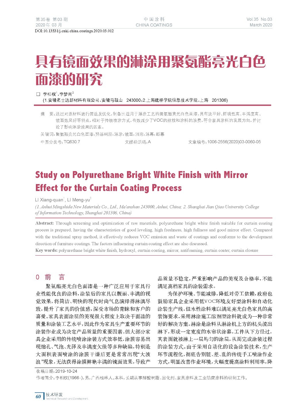 本文系作者@李相權,李夢雨 授權中國涂料網發表,并經中國涂料網編輯,未經允許不得轉載,如需轉載請聯系chinacoatingnet@vip.163.com