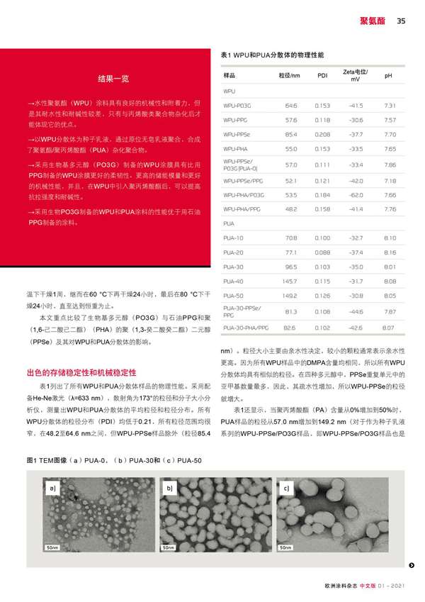 采用生物基1,3-丙二醇提高聚(聚氨酯-丙烯酸酯)雜化涂料的性能