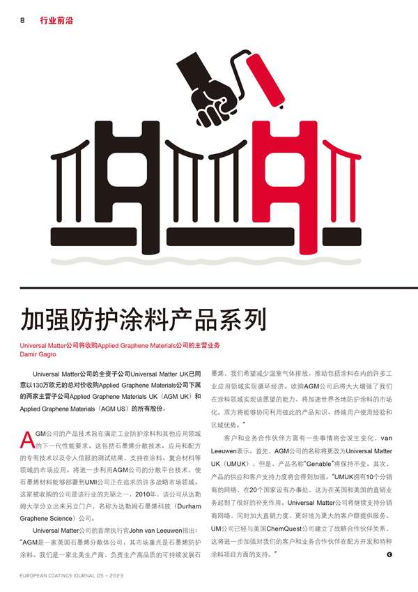 Universal Matter公司將收購Applied Graphene Materials公司的主營業務