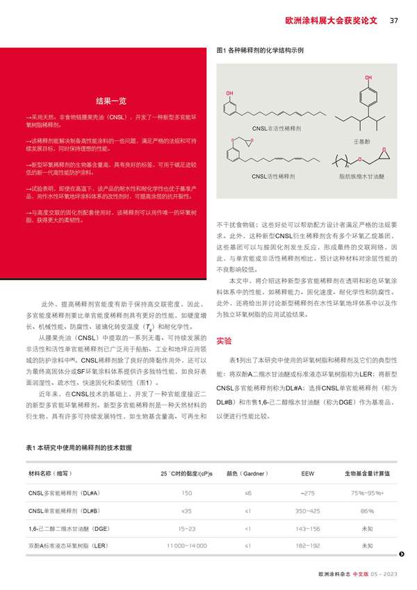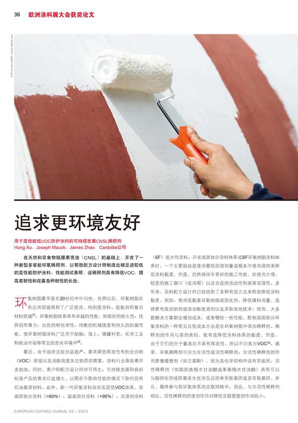 用于高性能低VOC防護涂料的可持續(xù)發(fā)展CNSL稀釋劑